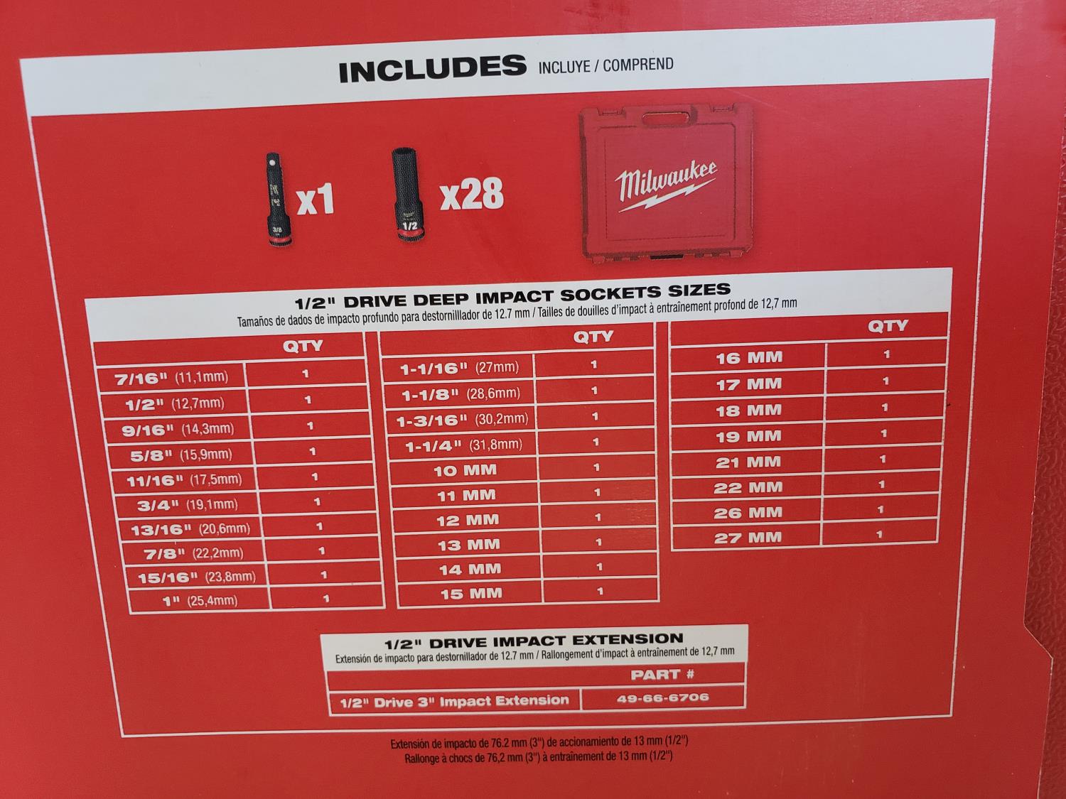 1276 Milwaukee 29 Piece 1/2 Inch Drive Impact Socket Kit (Unused)