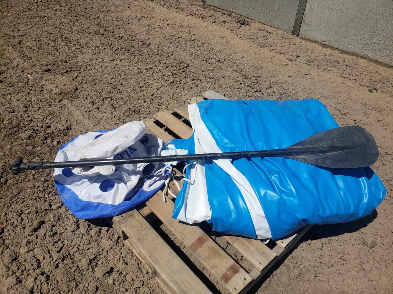 1144 5-Person Inflatable Island w/ Paddle and Floating Cooler