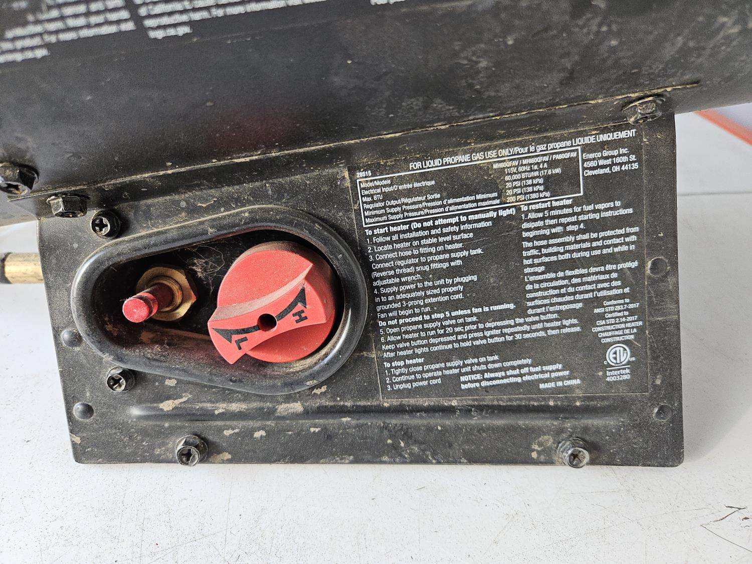 1330 Enerco Group Inc. MH600FAV Mr. Heater Shop Heater