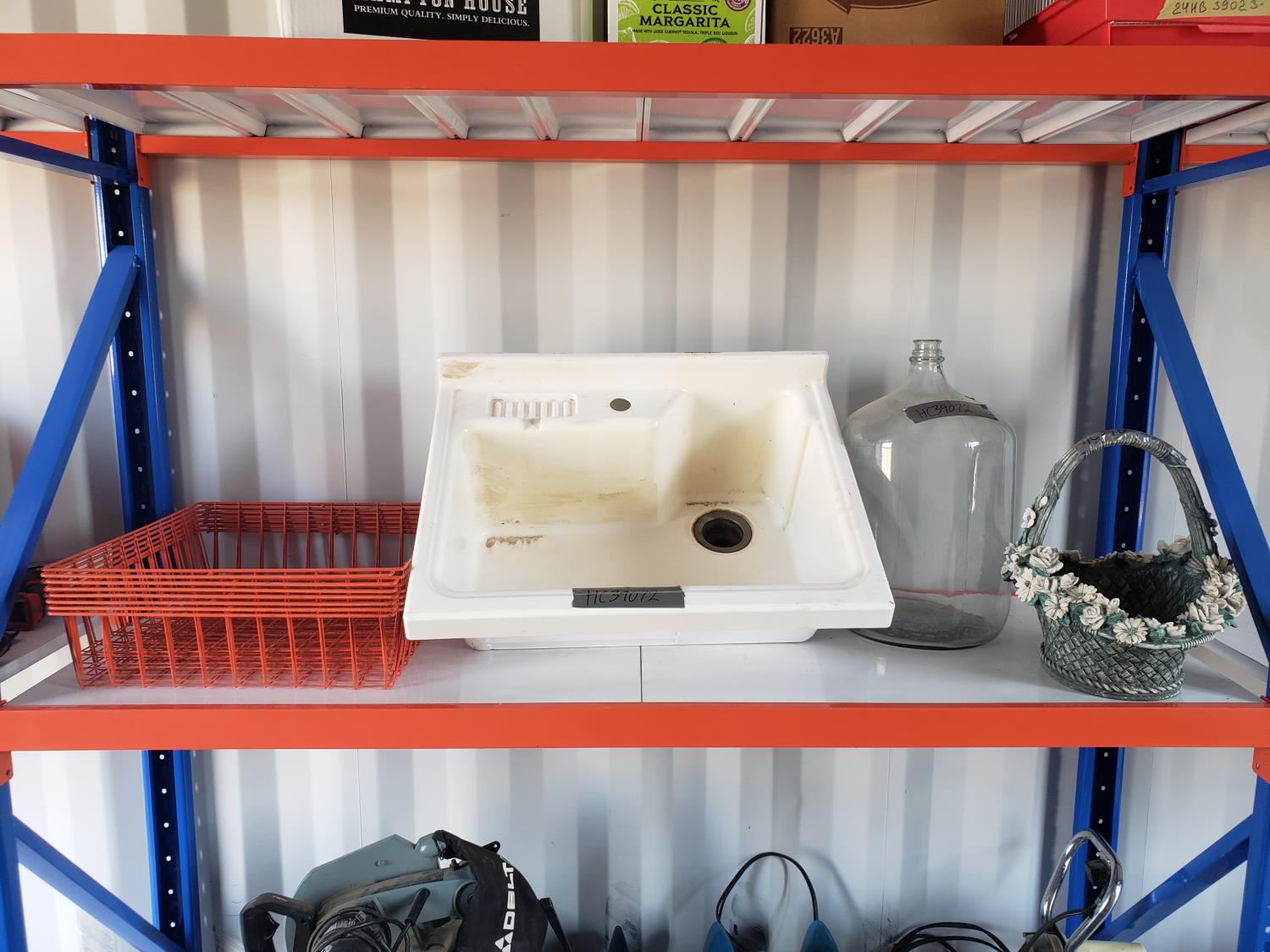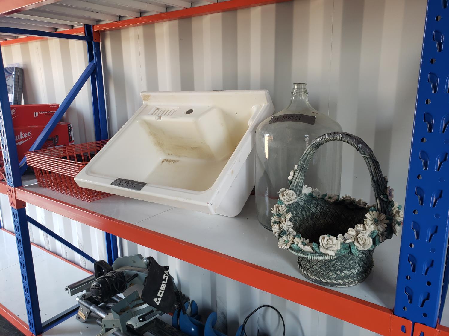 1278 Qty of (7) Baskets w/ Sink, Glass Jug, and Decorative Garden Pot