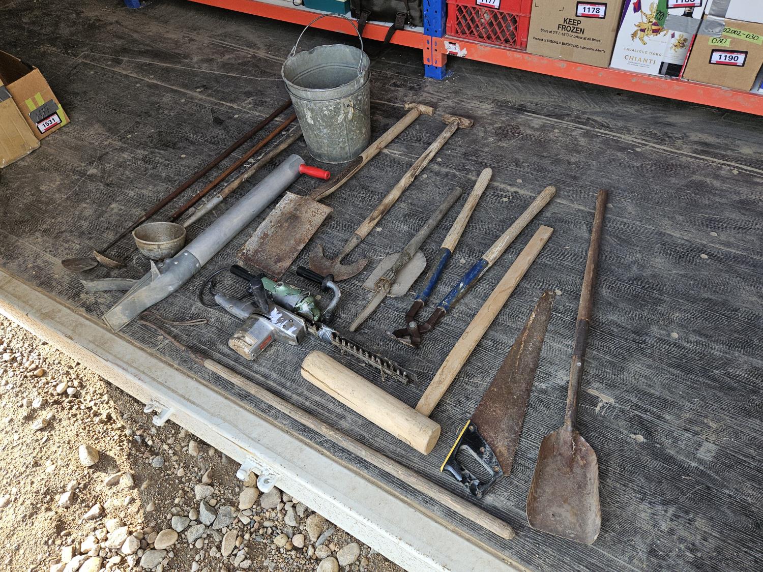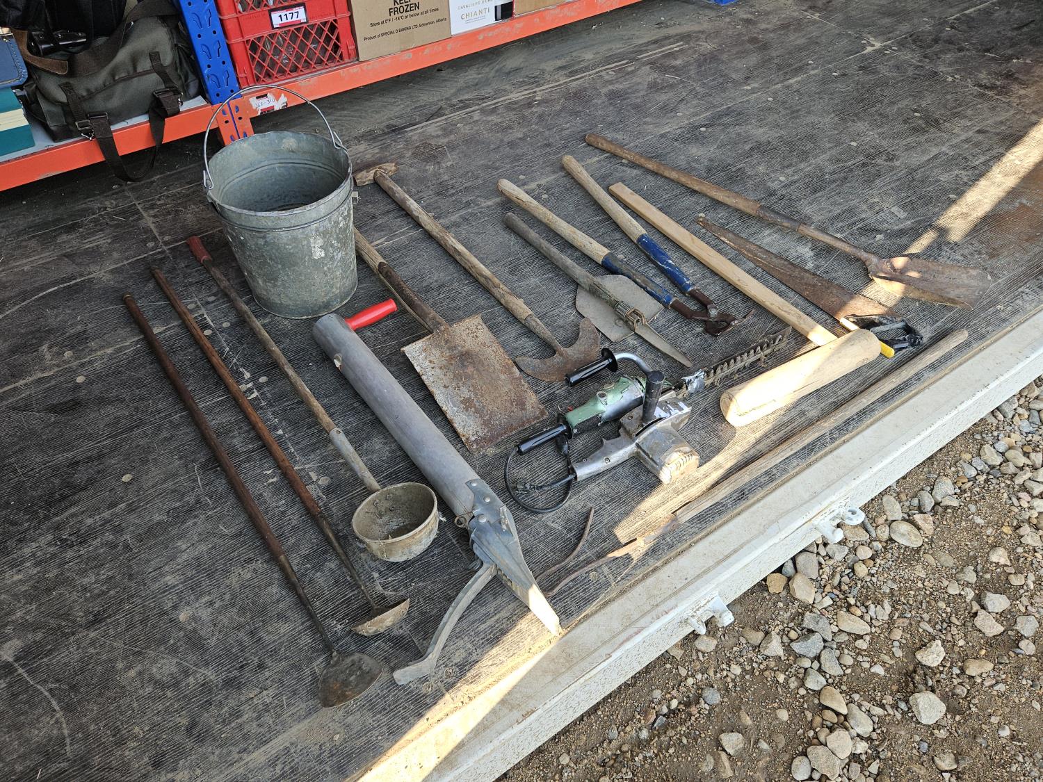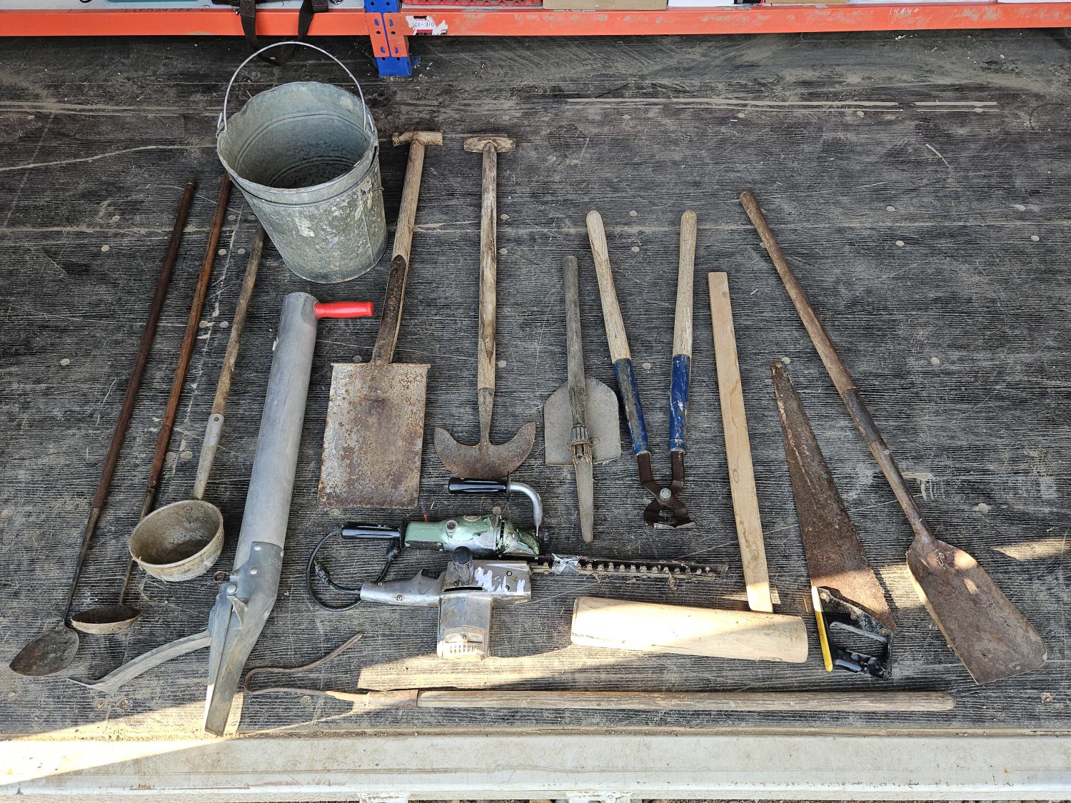 1304 Qty of Antique Tools w/ Electric Trimmer and (2) Buckets