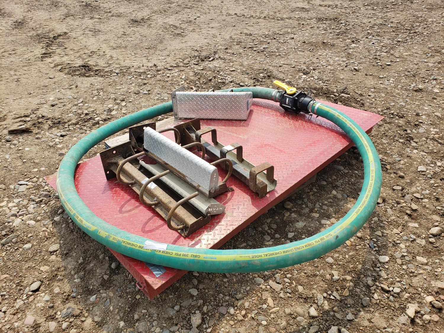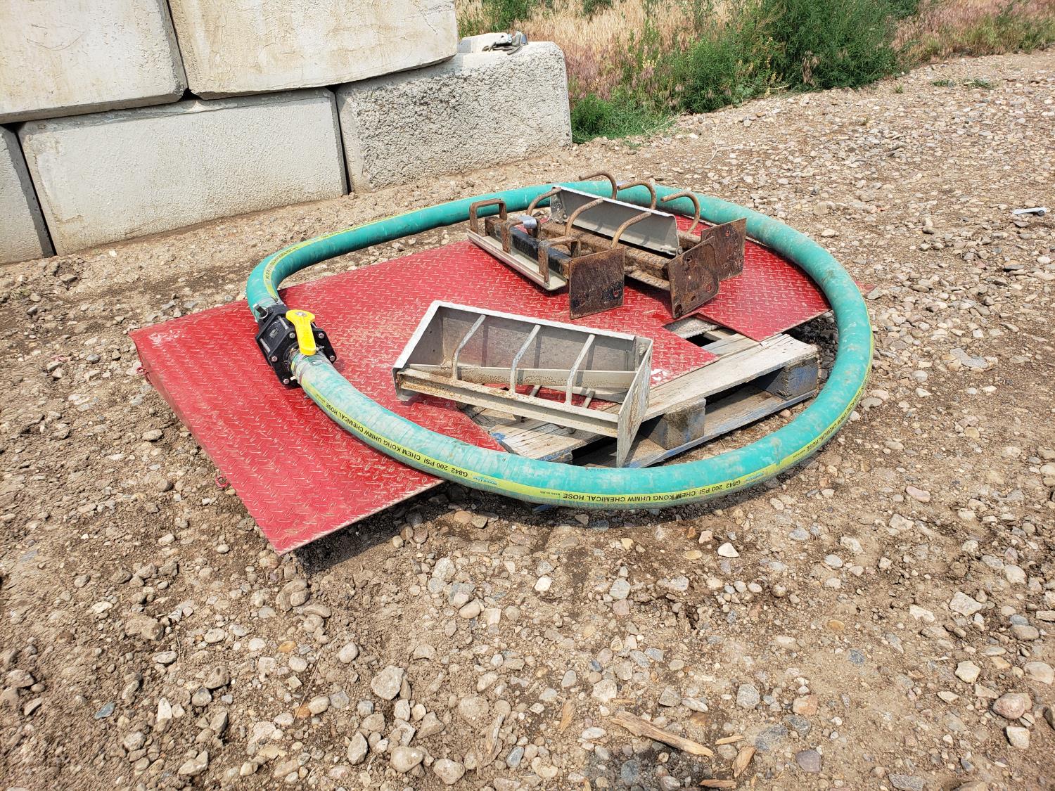 shipping container load ramp, (4) chain racks, 200 PSI chem transfer hose