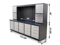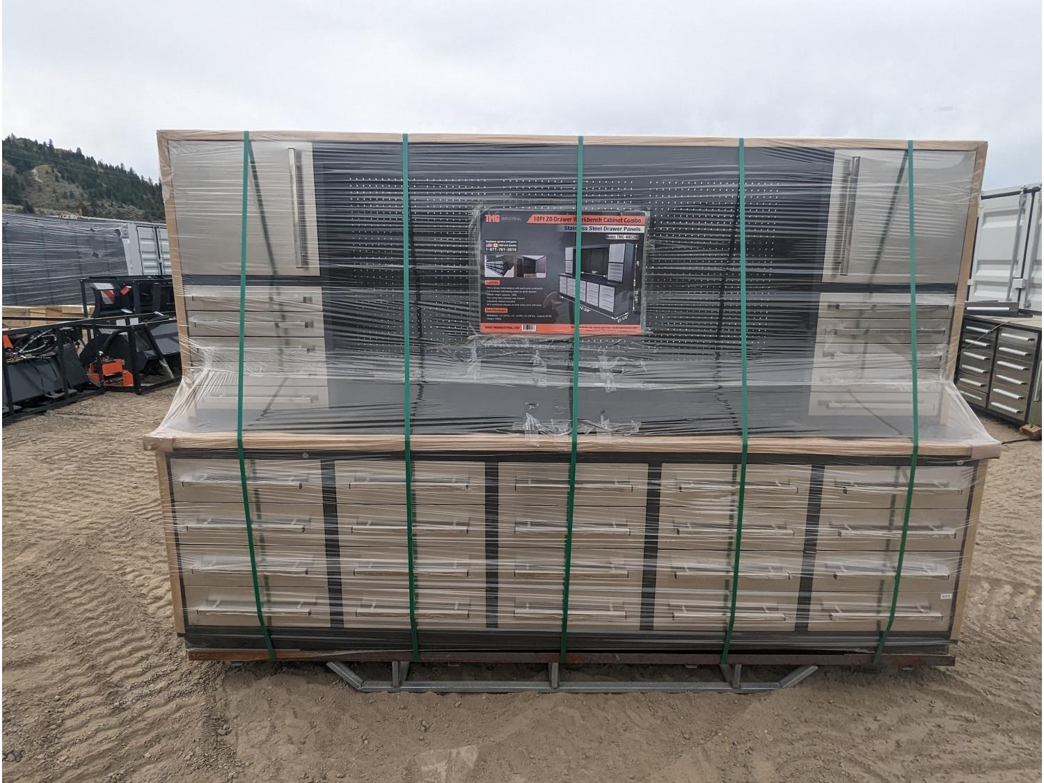 86 TMG Industrial TMG-WBC20D 10 Ft 20-Drawer Workbench Cabinet Combo with Stainless Steel Drawer Panels (Unused)