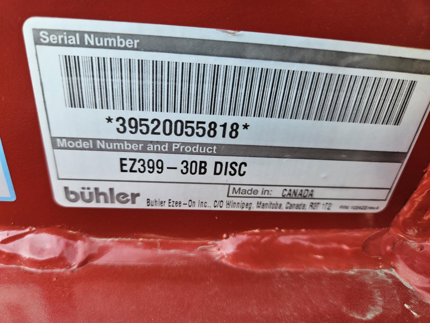 front: smooth 21 inch discs, rear: smooth 21 inch discs, scrapers, stone flex bearing hangers, hydraulic cylinder, locked in transport
