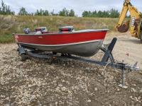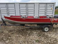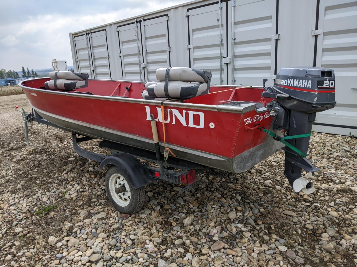 658 16 Ft Lund Aluminum Boat with 20 HP Yamaha Outboard Motor On Trailer