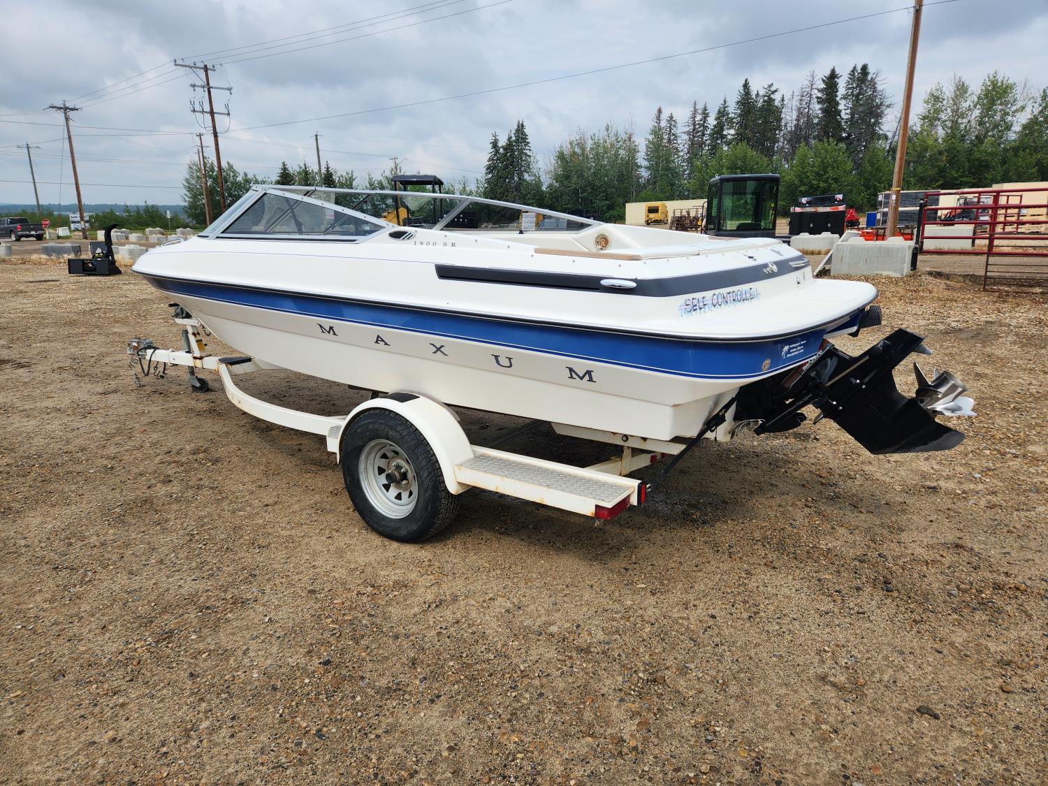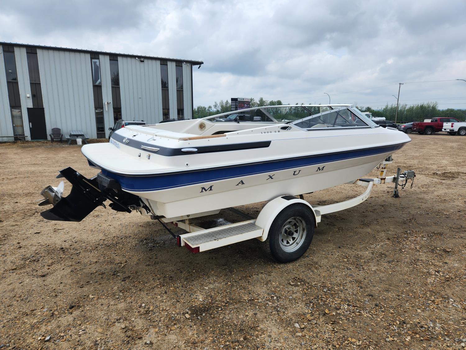 653 1993 Maxum 1900 SR 19 Ft Fiberglass Sport Boat with S/A Maxum Trailer (Inoperable)