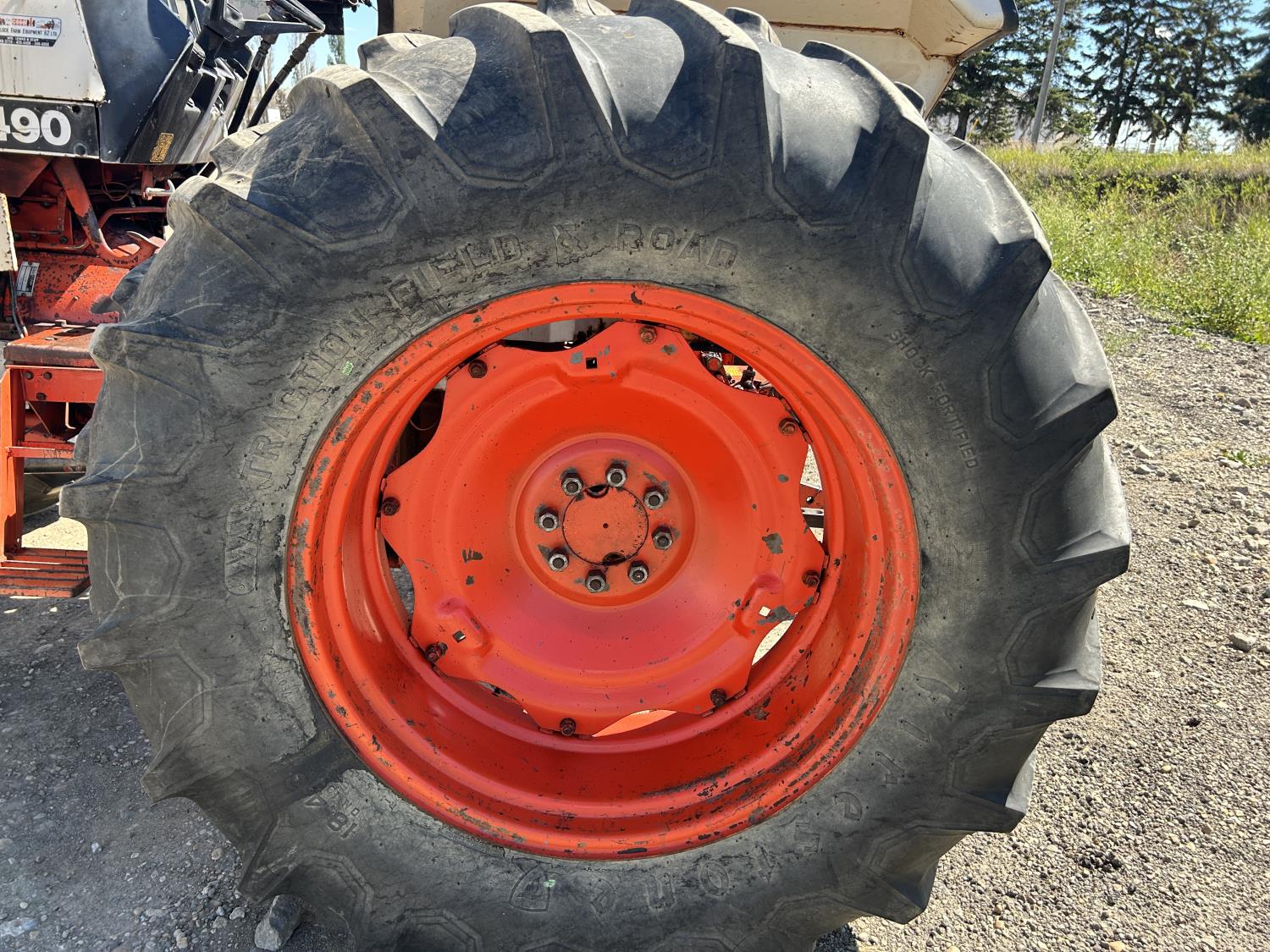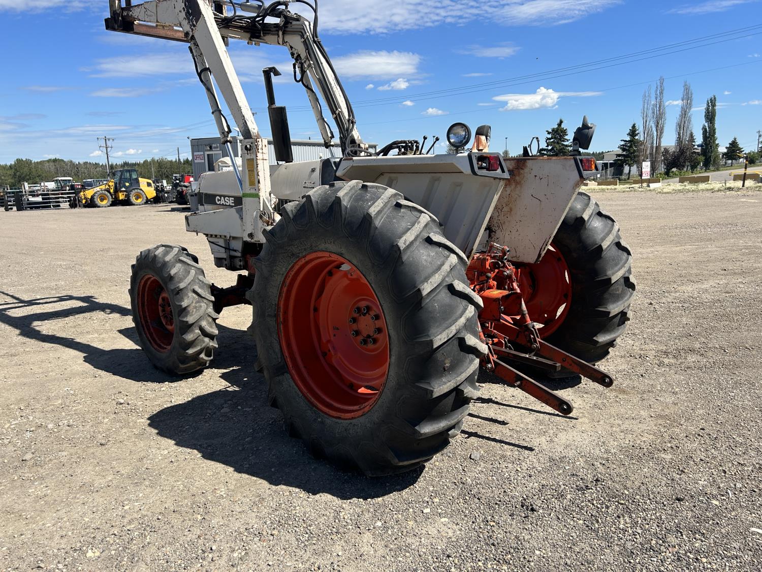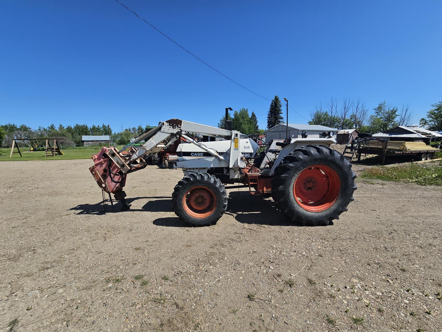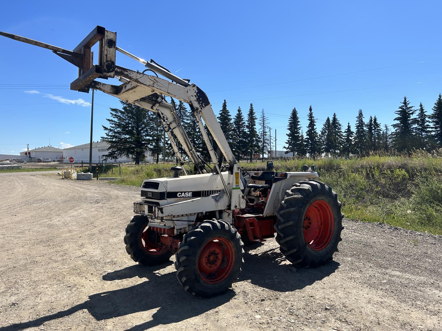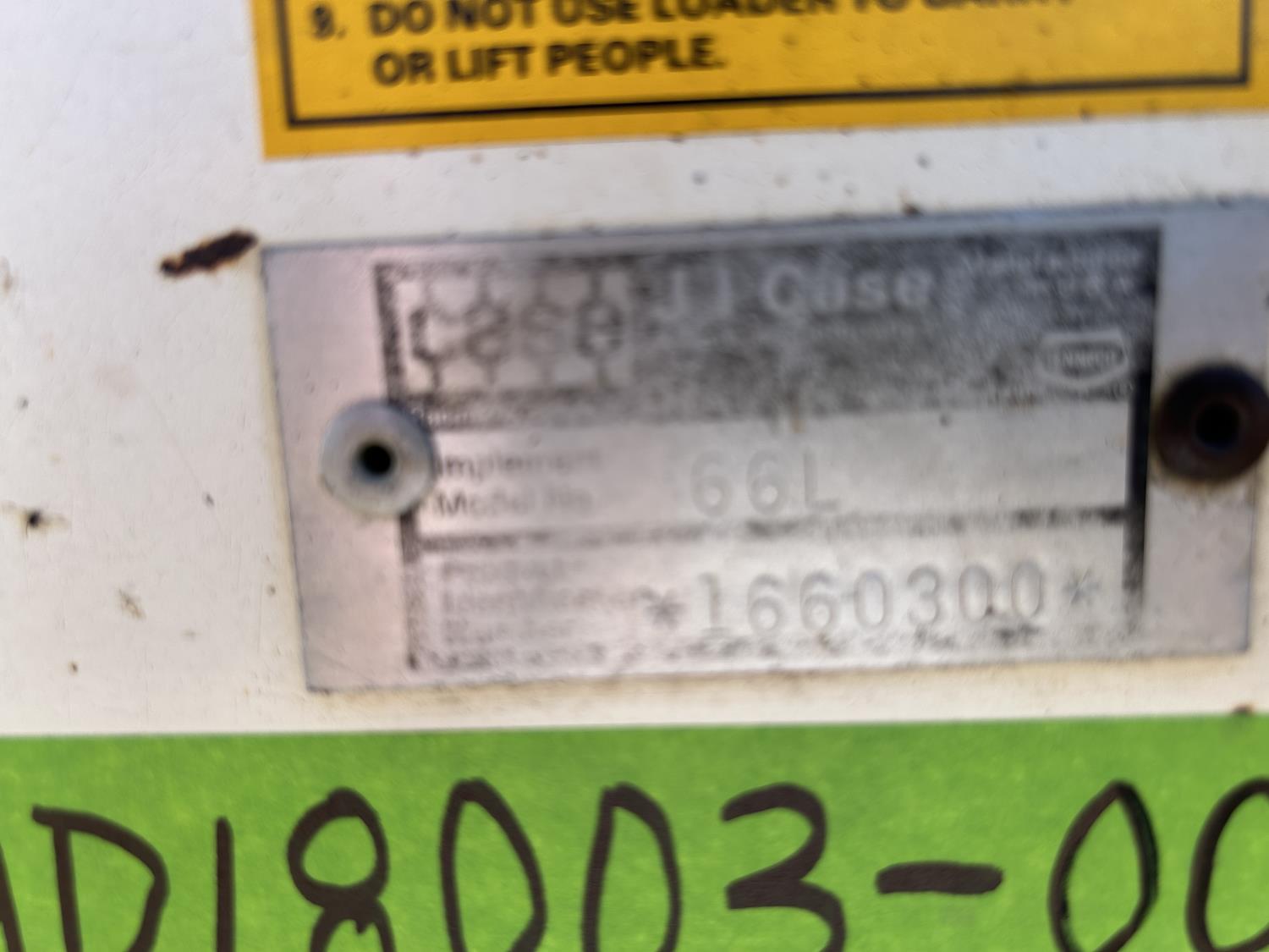 Case 66L loader, bale forks, Case loader mounts, Case 3.6 L 4 cylinder 86 HP, diesel engine, 12 speed manual transmission, open station platform, rear differential lock, 540/1000 PTO, 3 point hitch