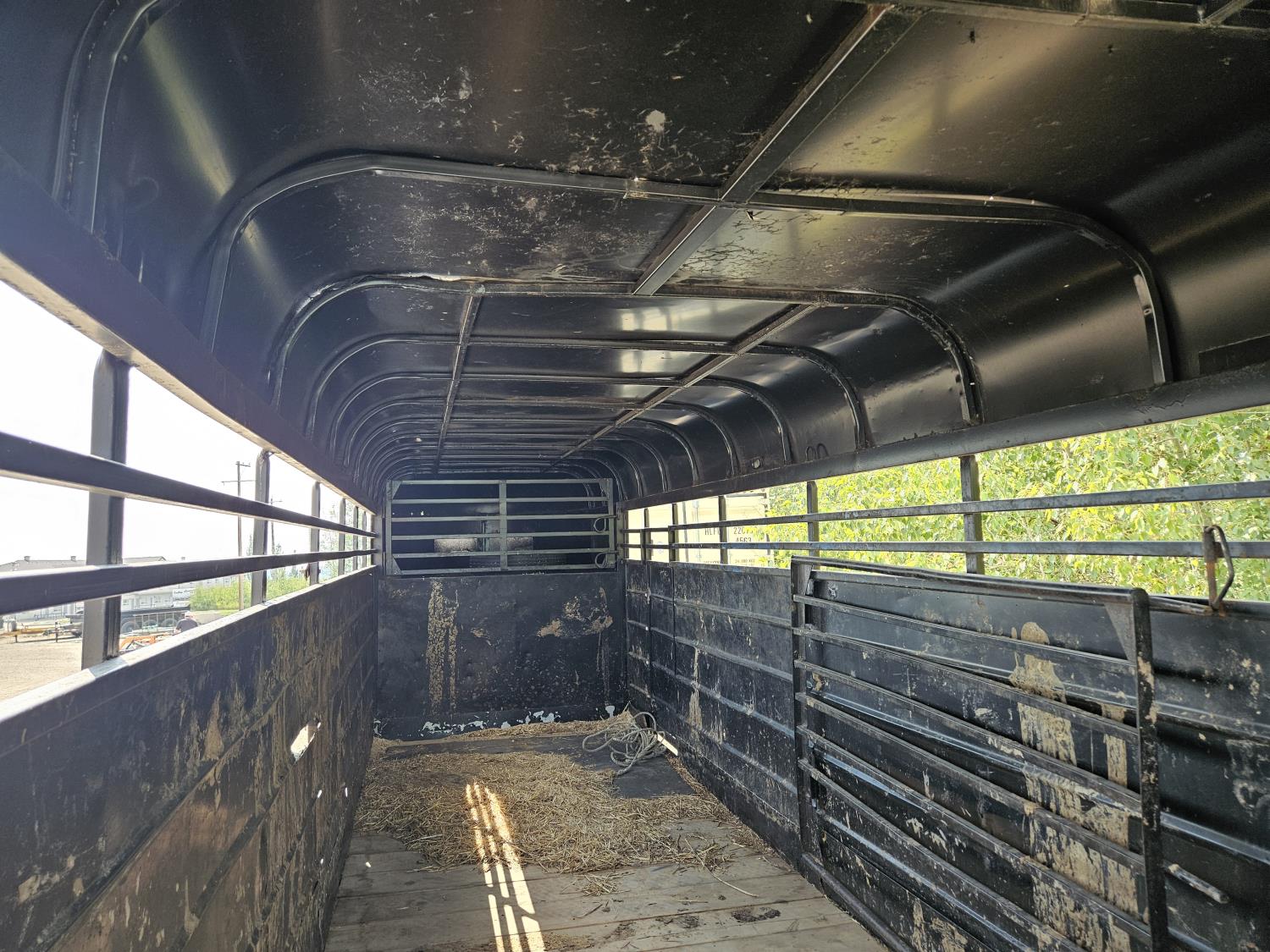 inside height 79 inch, inside width 71 inch, single divider door, right hand man door, G/N storage, full swing sliding rear door, 5200 lb axles, spare tire, 7.50-15 tires