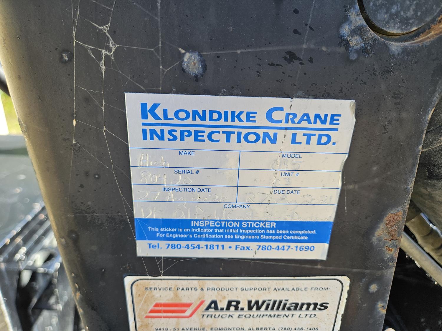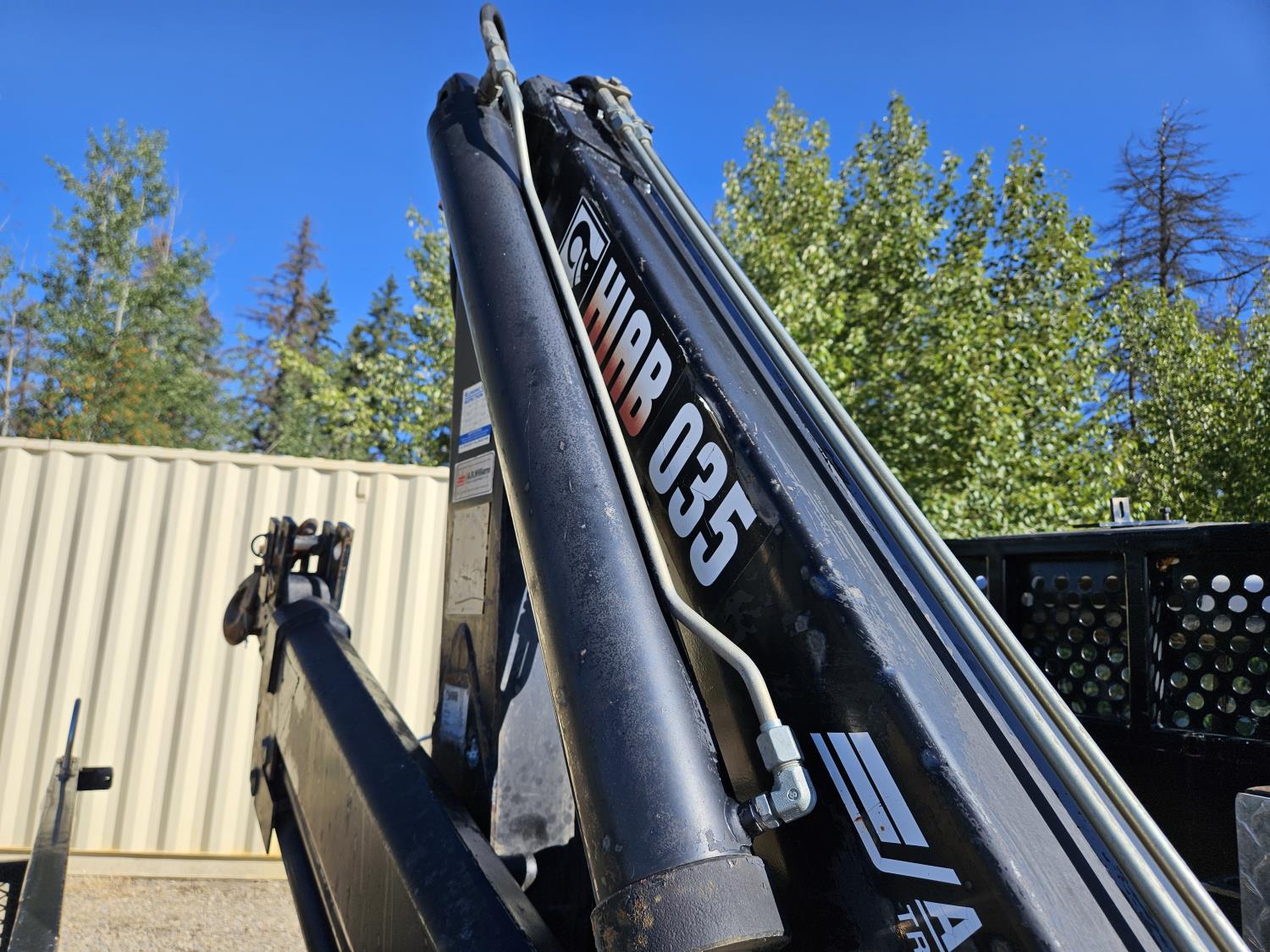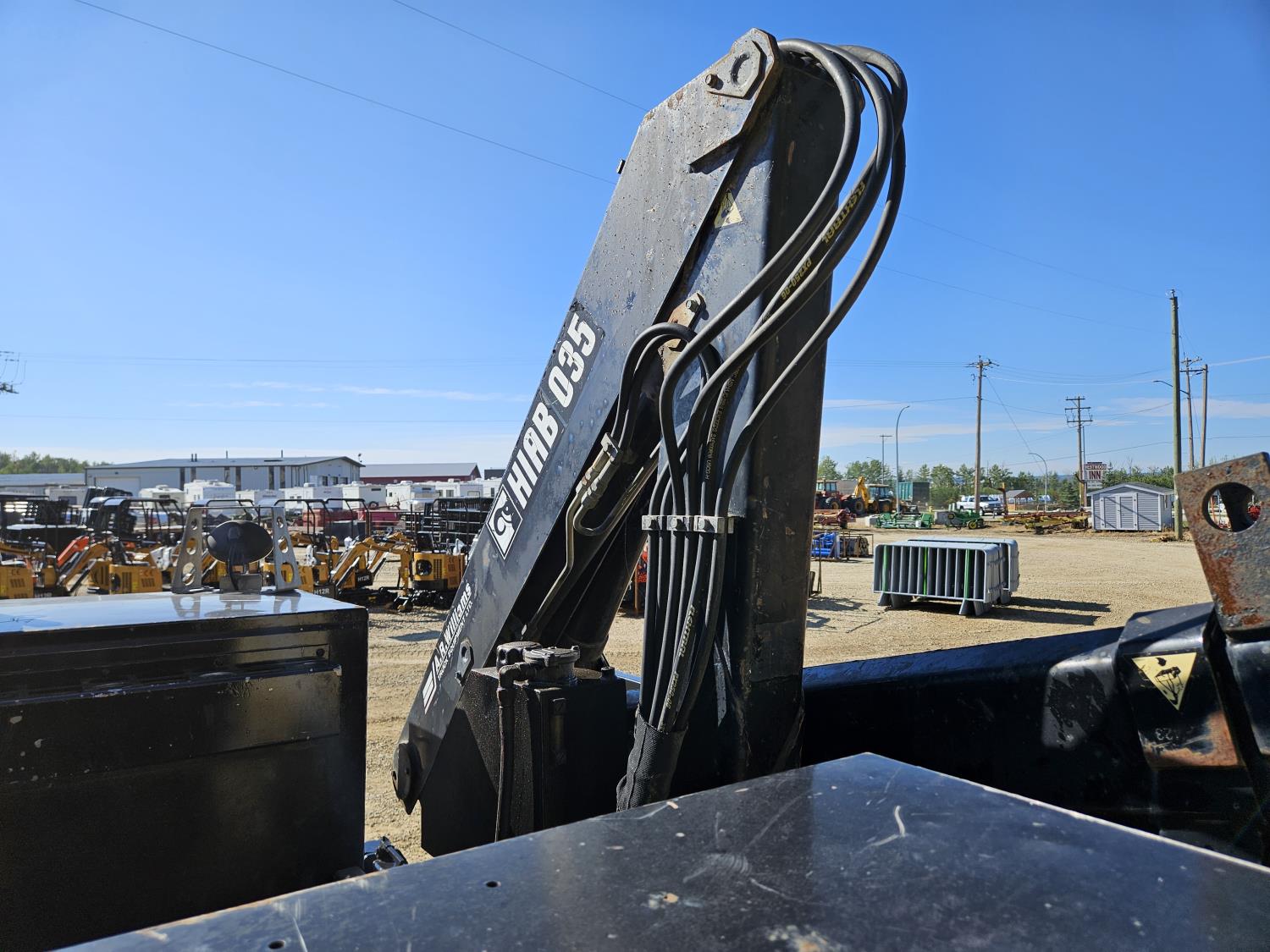 6.0 L V8 diesel engine, positive air shutoff, automatic transmission, A/C, radio, hydraulic wet kit, tool boxes, 8 ft x 6 ft deck, Hiab 035 3 section knuckle crane, outriggers, spring suspension, 245/70R19.5 front tires, 245/70R19.5 rear tires