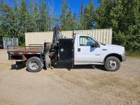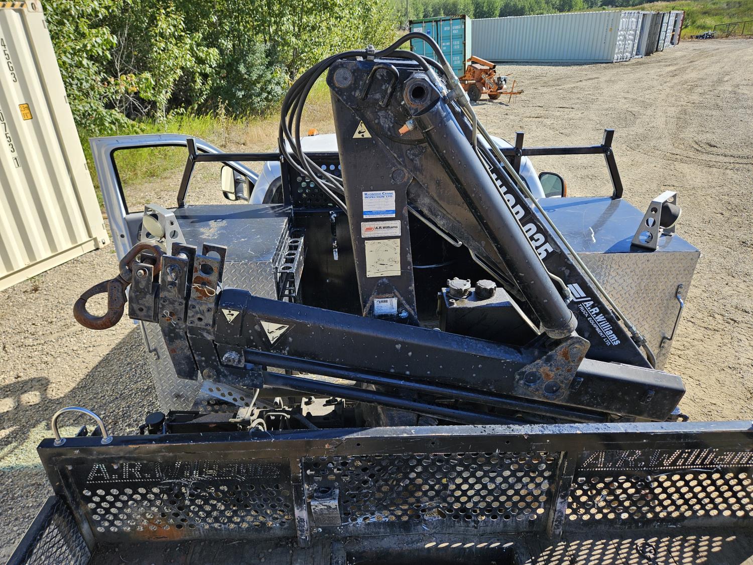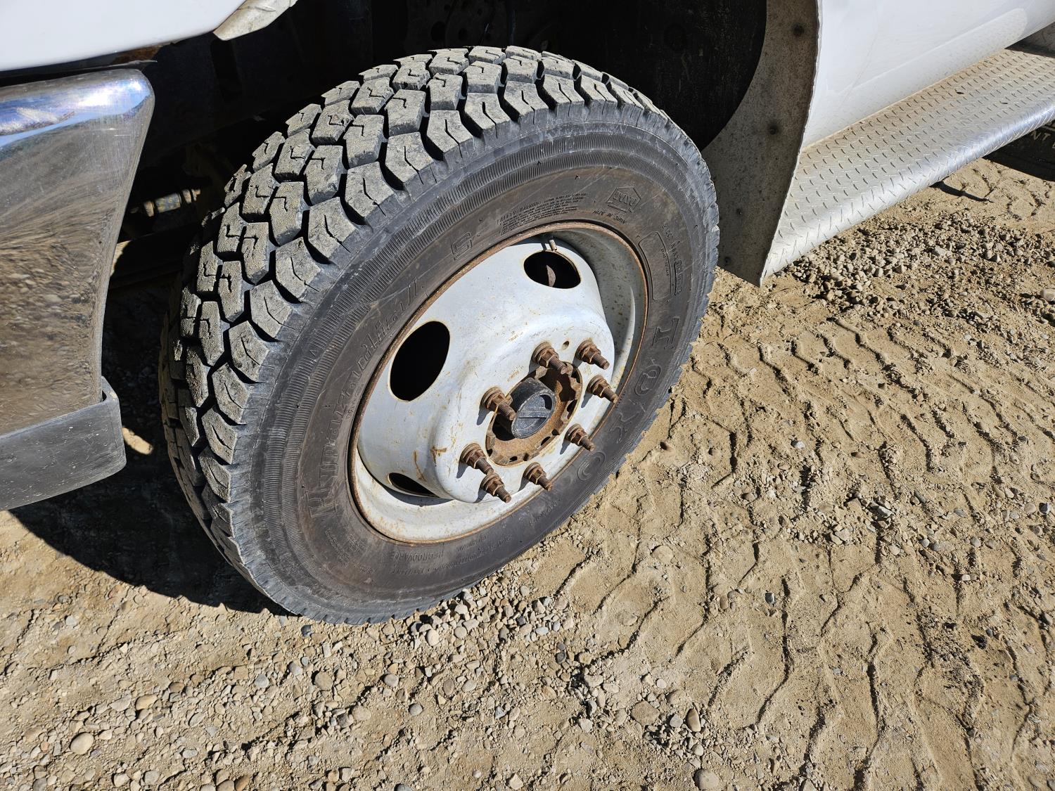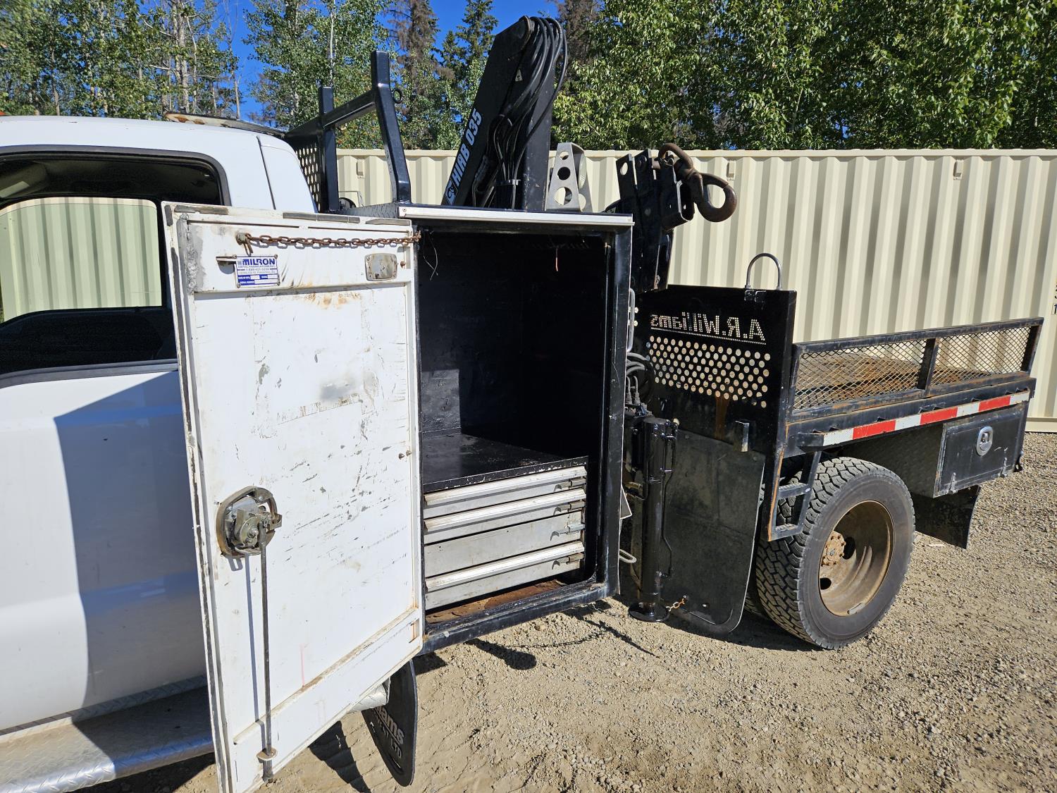 6.0 L V8 diesel engine, positive air shutoff, automatic transmission, A/C, radio, hydraulic wet kit, tool boxes, 8 ft x 6 ft deck, Hiab 035 3 section knuckle crane, outriggers, spring suspension, 245/70R19.5 front tires, 245/70R19.5 rear tires