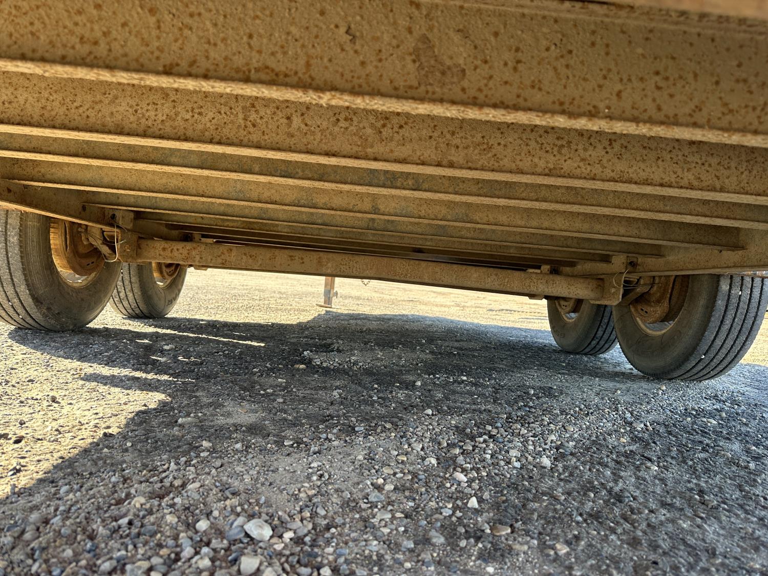 80 inch wide deck, wood deck, stand up ramps, electric brakes, torsion suspension, ball hitch, rub rails, stake pockets, comes with stabilizer bars and assorted boomers , 7000 lb axles, 235/85R16 tires