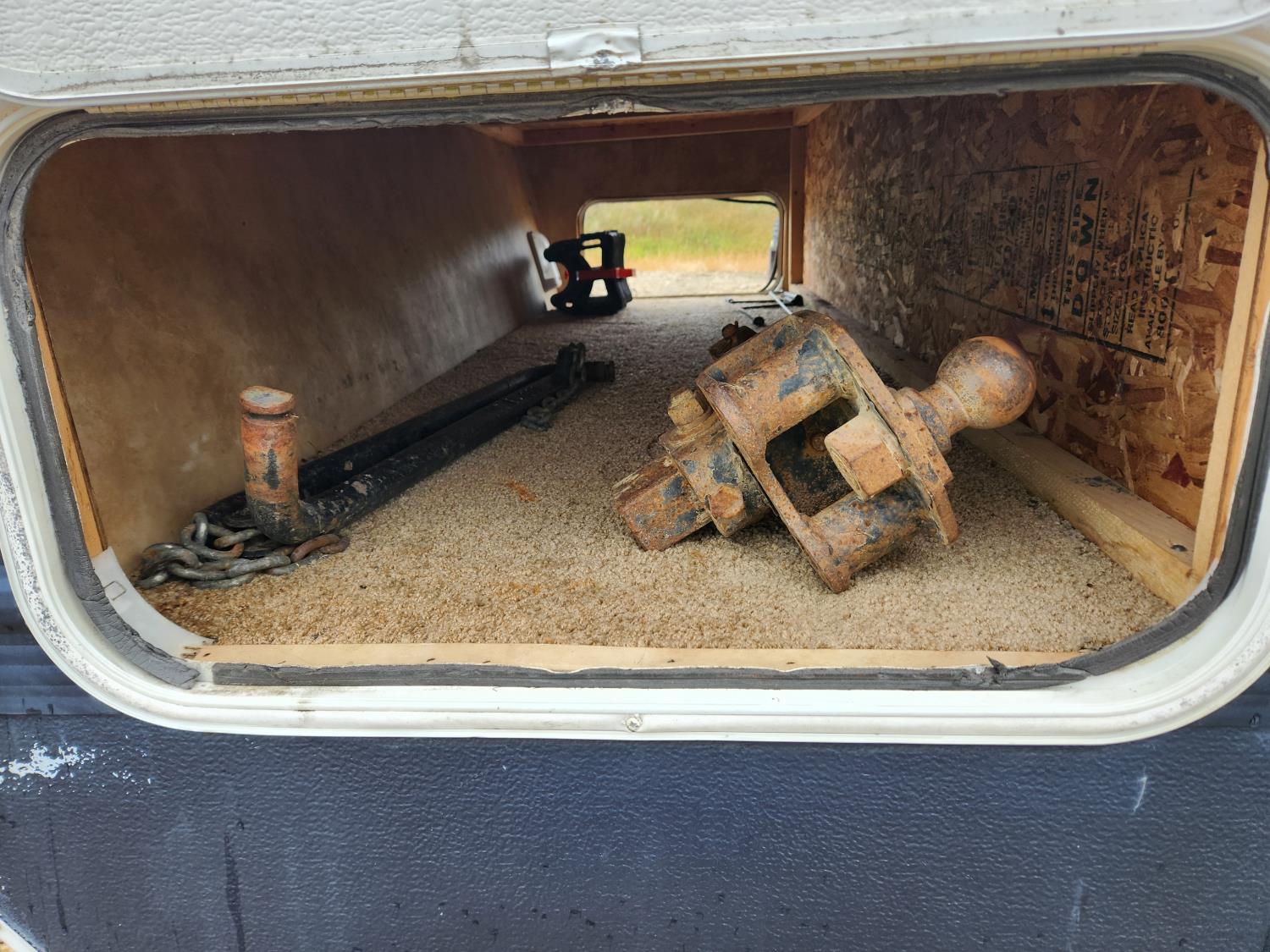 Hitch & Sway Bars Inside Front Storage Compartment
