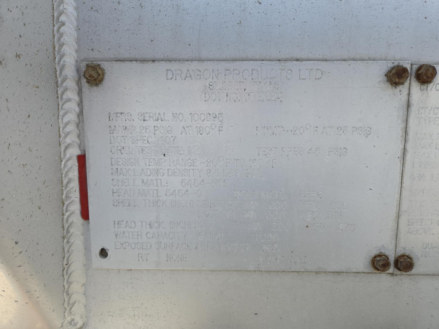 245 2014 Dragon 11,100 Gallon TRI/A Aluminum Tanker