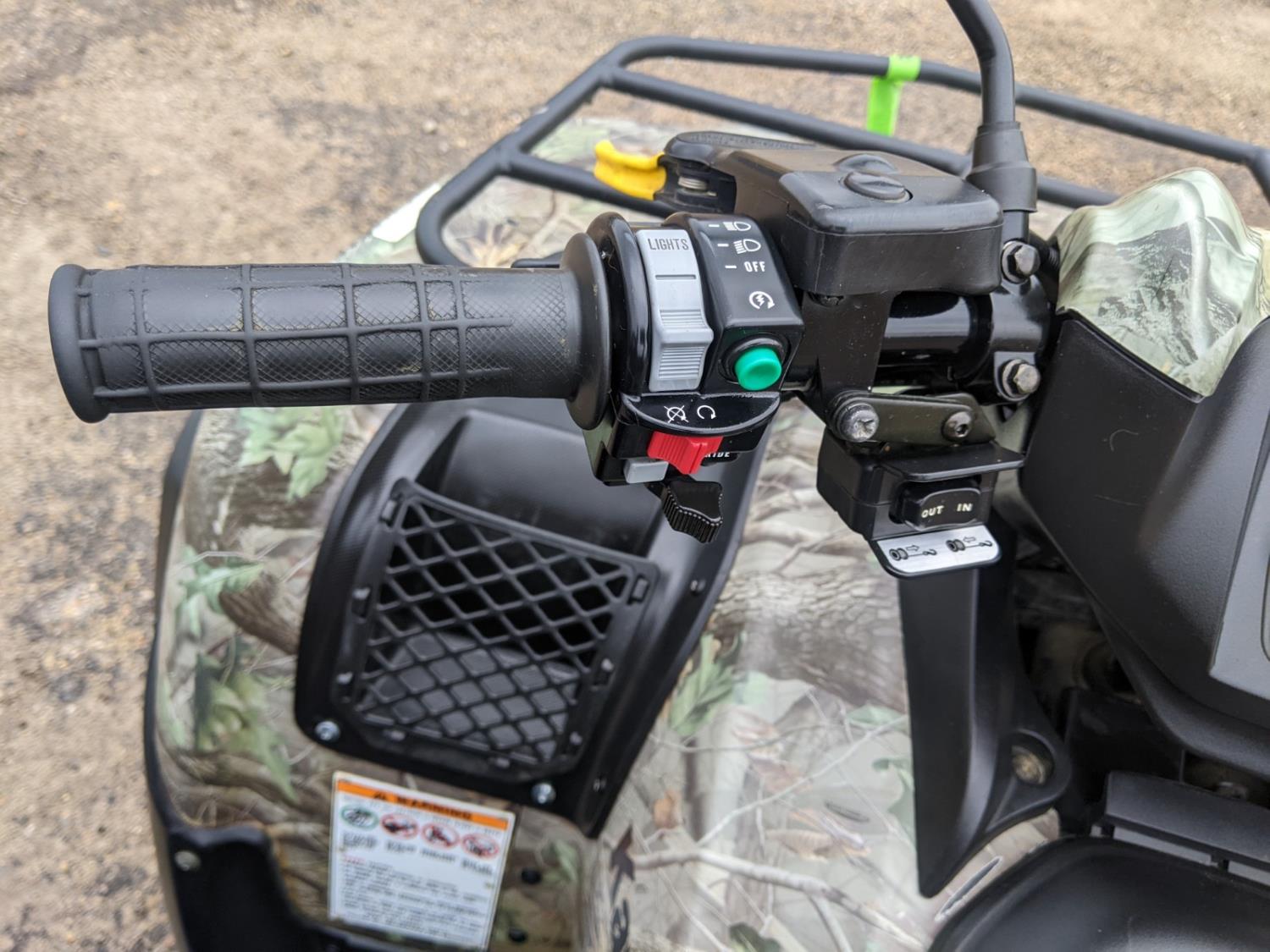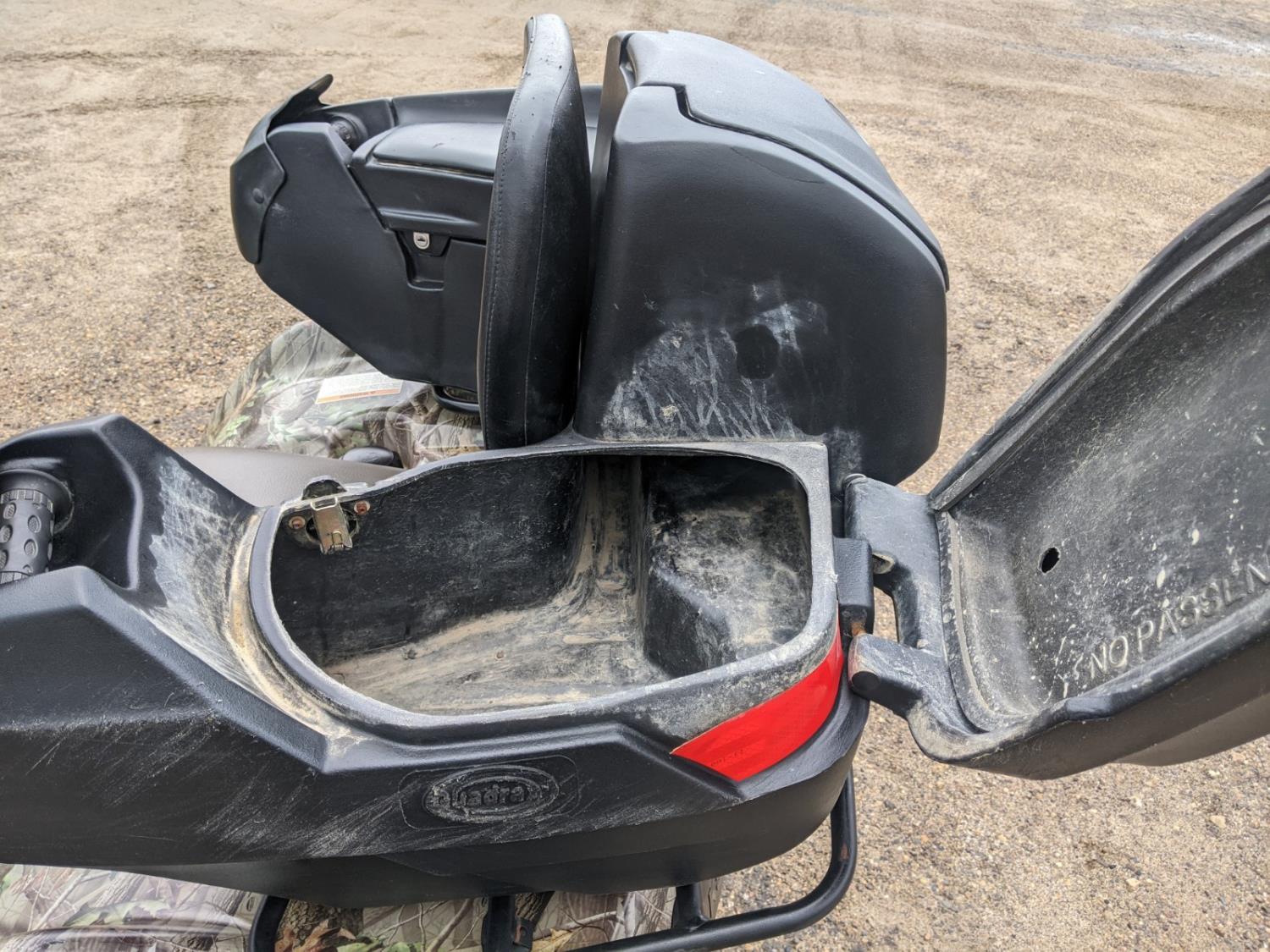 633 cc engine, automatic transmission, Hi/Lo range, reverse, hitch, front and rear racks, buddy seat, tool box, front winch, 26X12-12 front tires, 26X10-12 rear tires