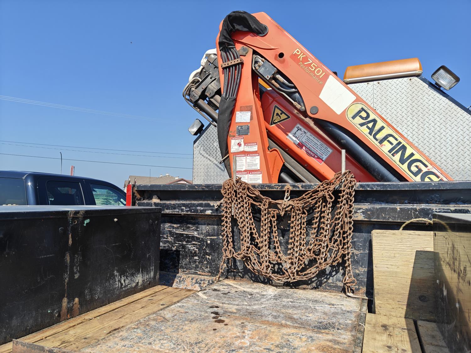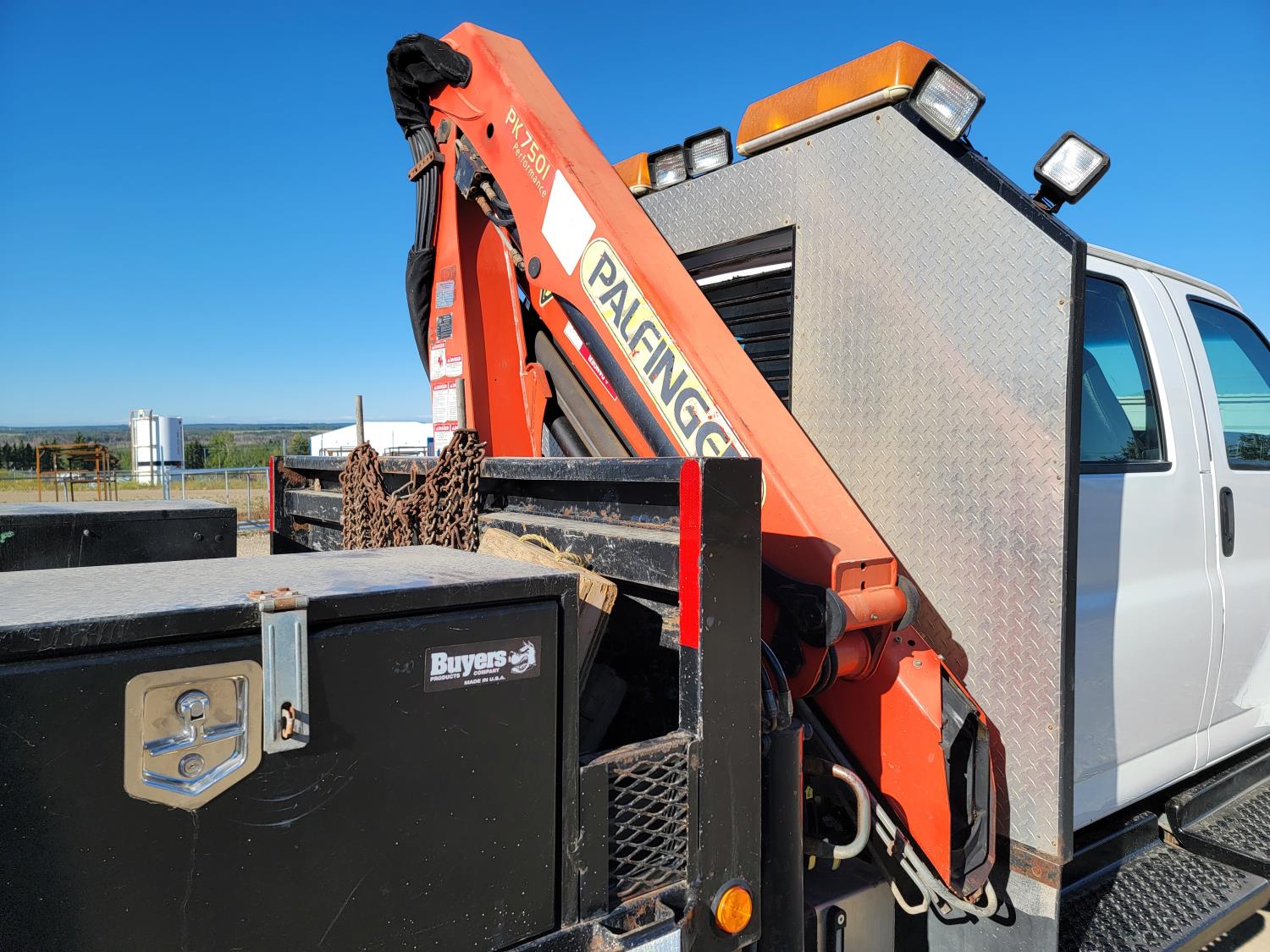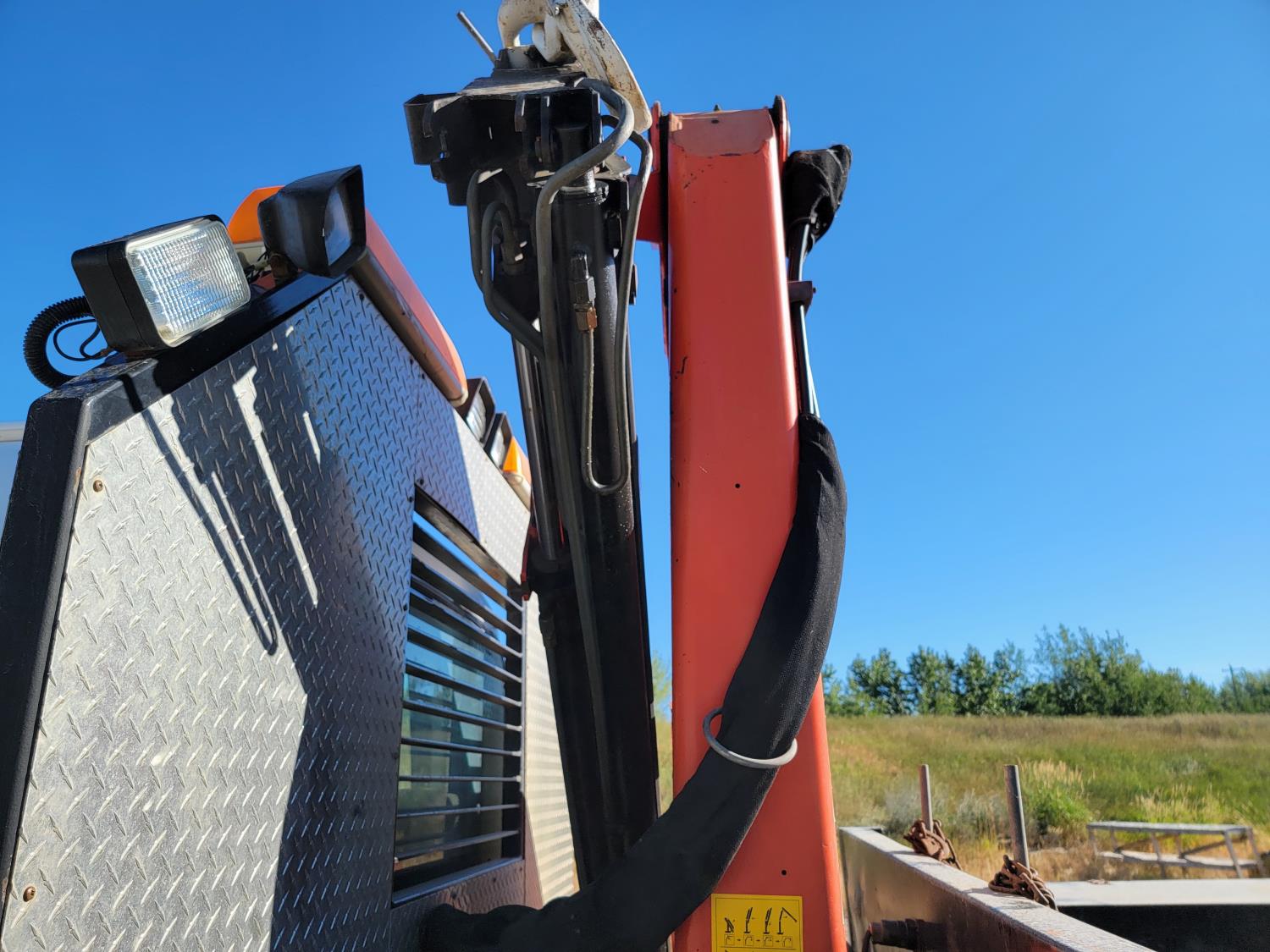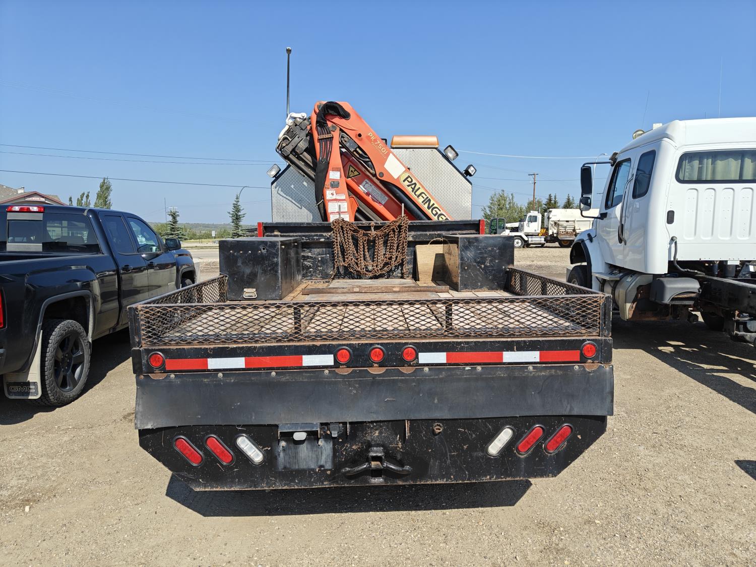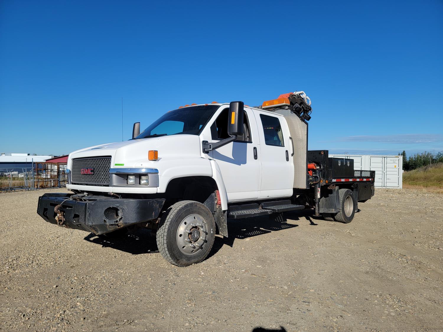Gmc DURAMAX 6.6 L V8 diesel engine, Allison LCT 1000 transmission, A/C, cruise control, leather interior, stereo, Rear Trailer Hitch, Aluminum Wheels With 245/70 R19.5 tires, 8000lb winch, Headache Rack Beacons, Palfinger Picker Model # PK7501 Deck 92 Inches Wide X 120 Inches long
