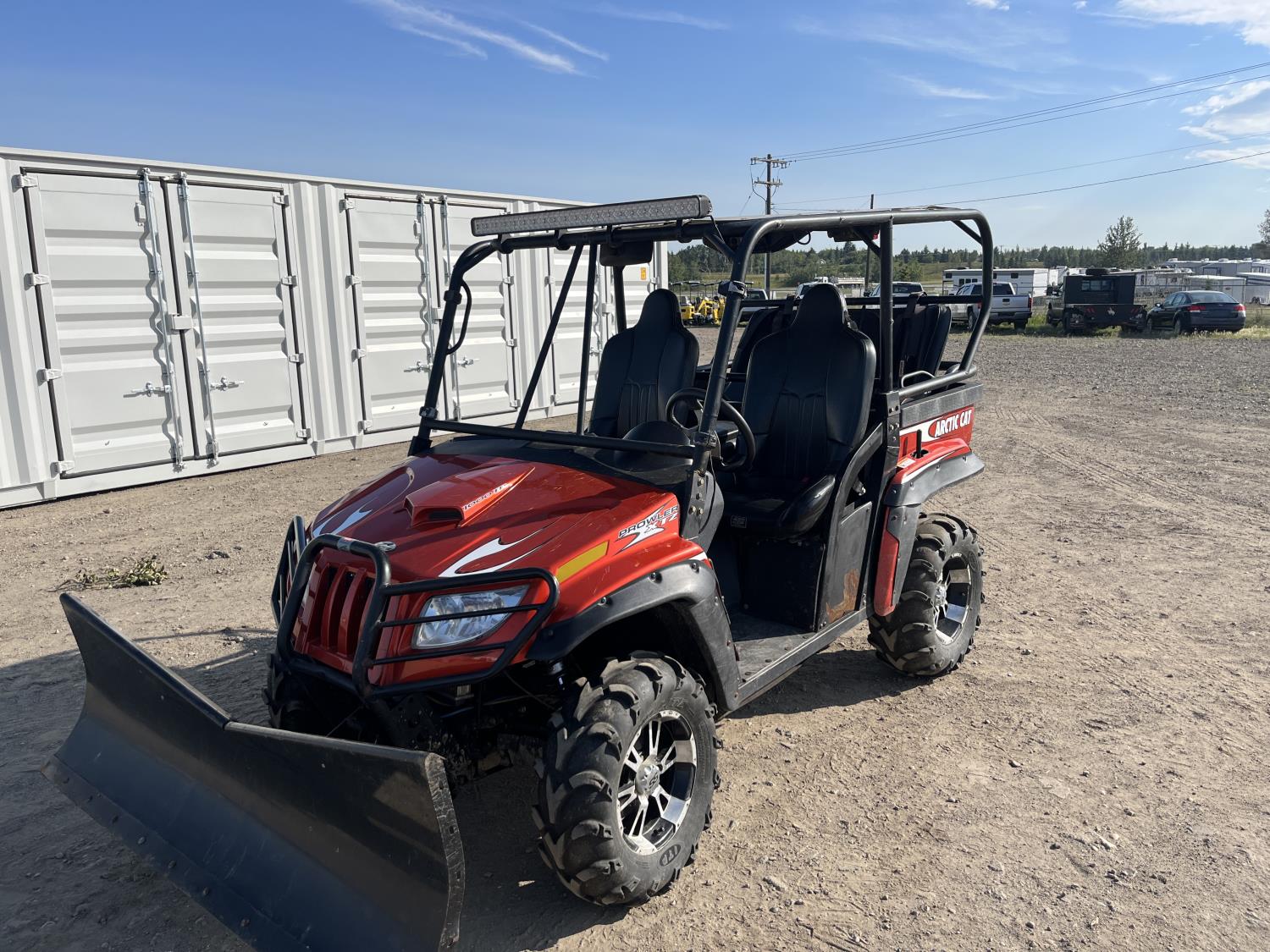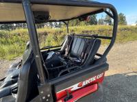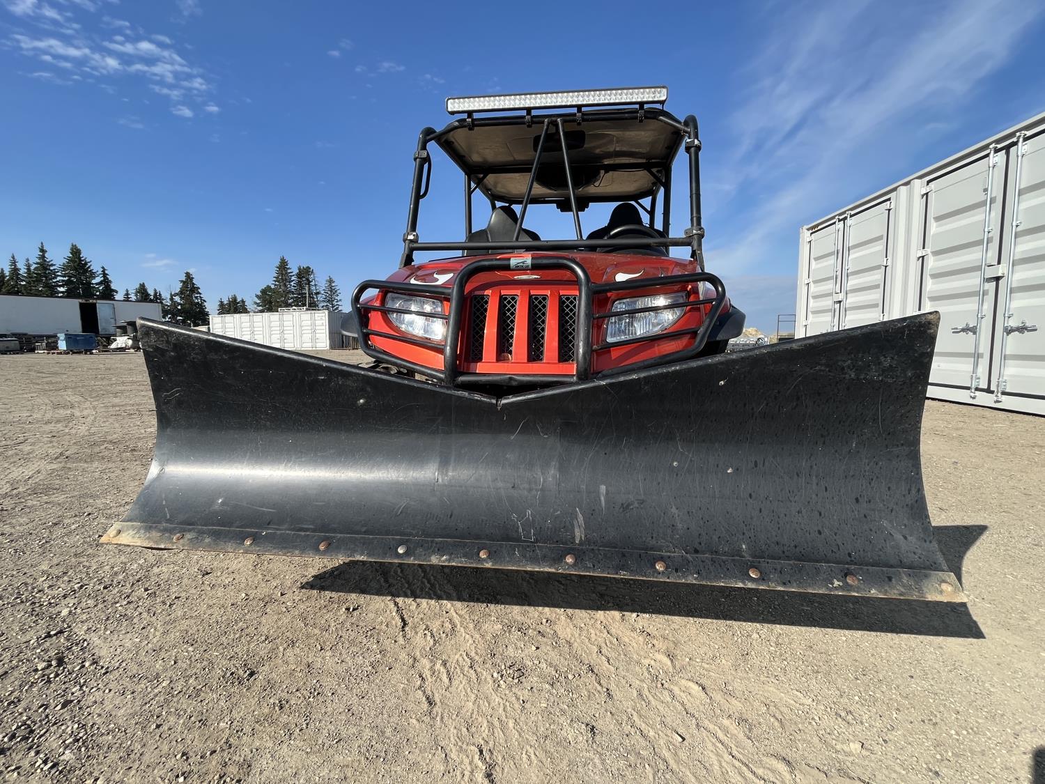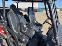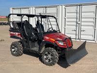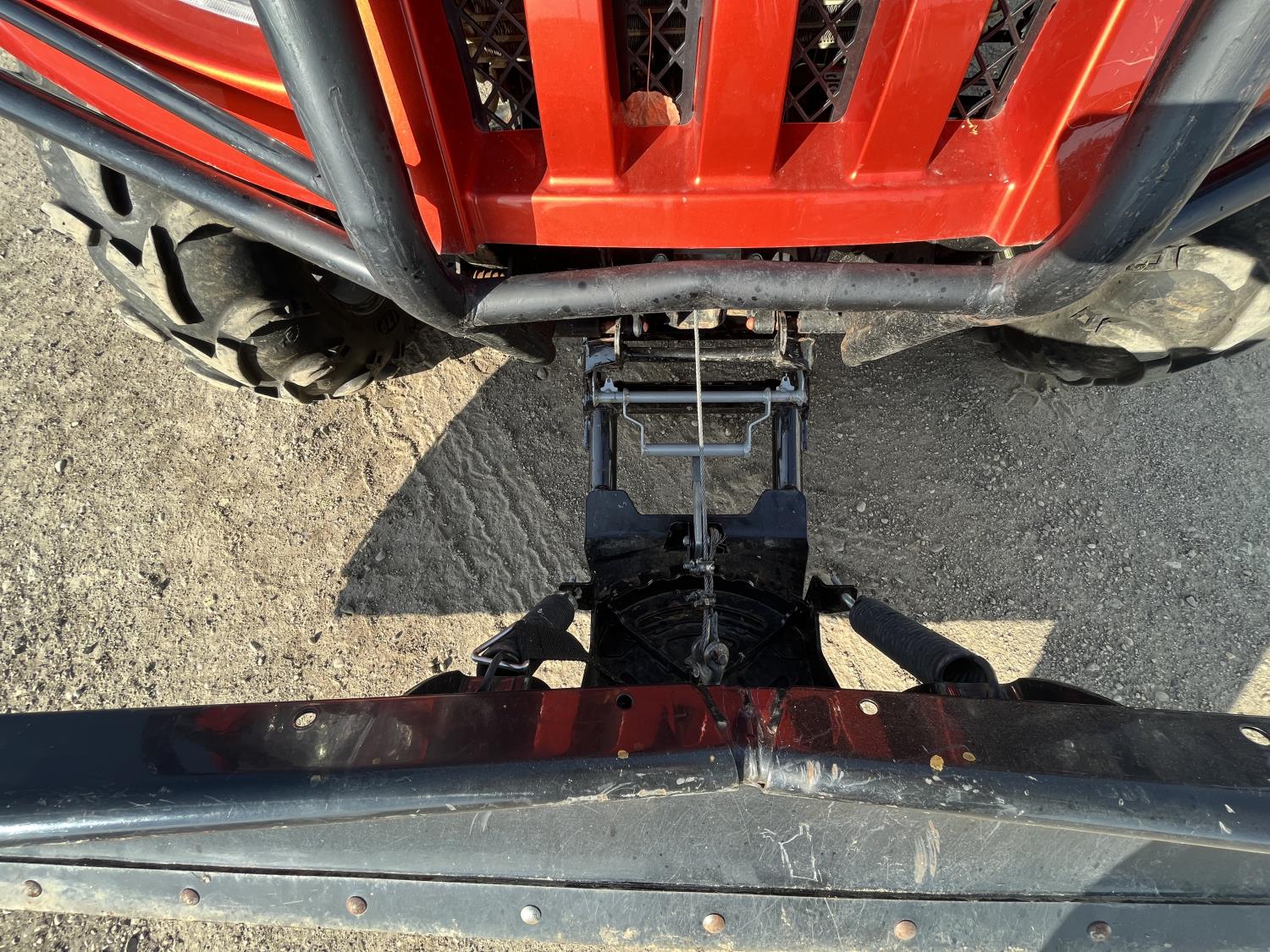 1000 cc fuel injected engine, automatic transmission, Hi/Lo range, reverse, 2 passenger seating with dump bucket, front winch with snow plough attachment, receiver and two 28x12x14 and two 28x10x14 tires.