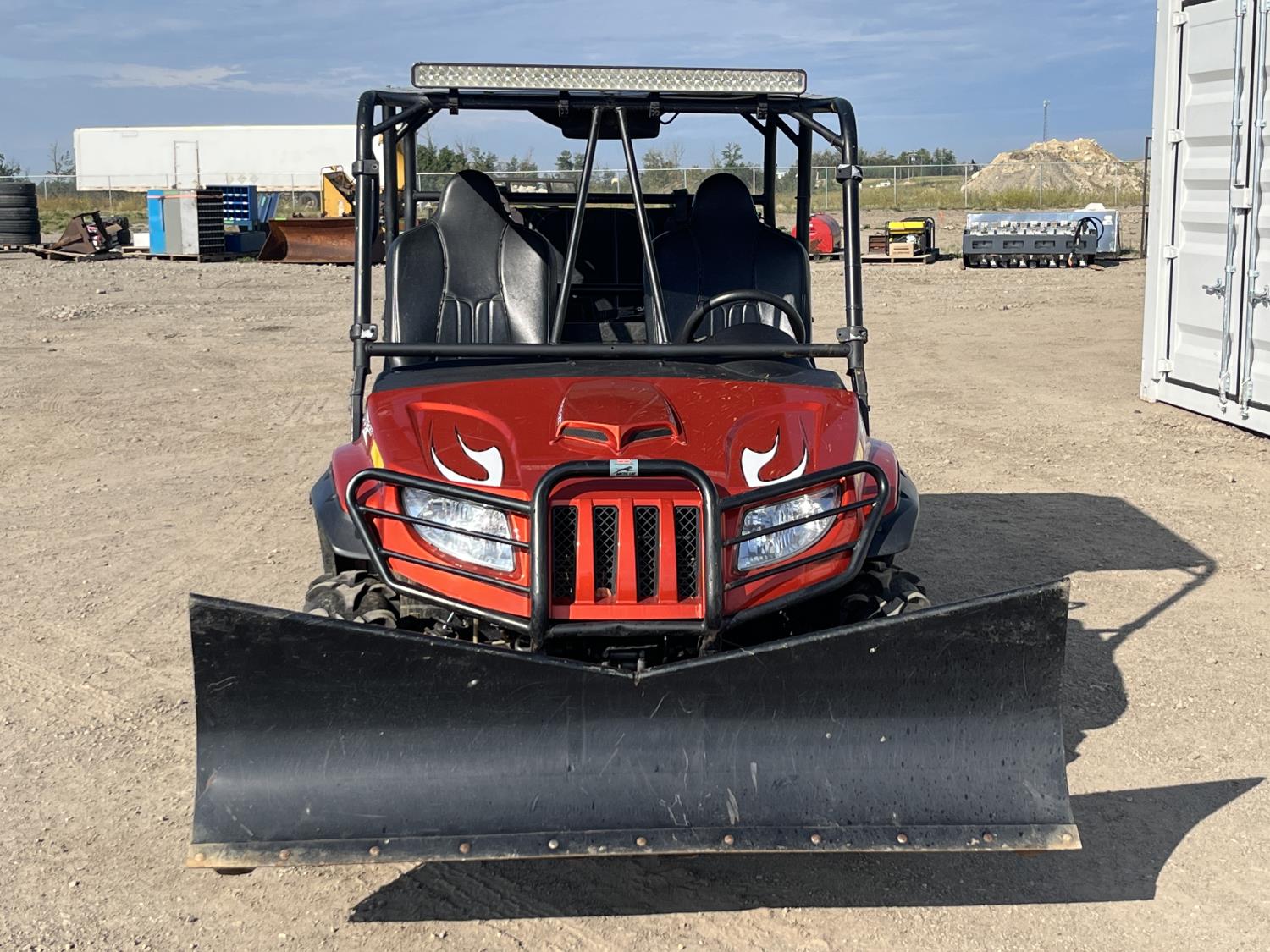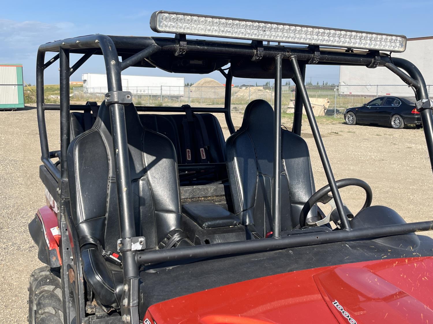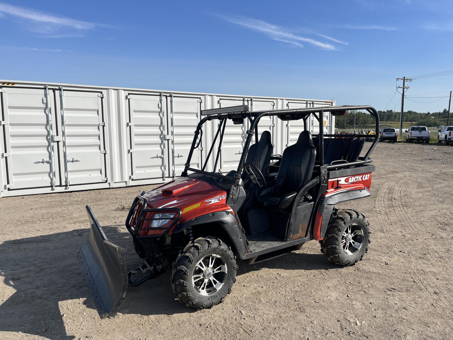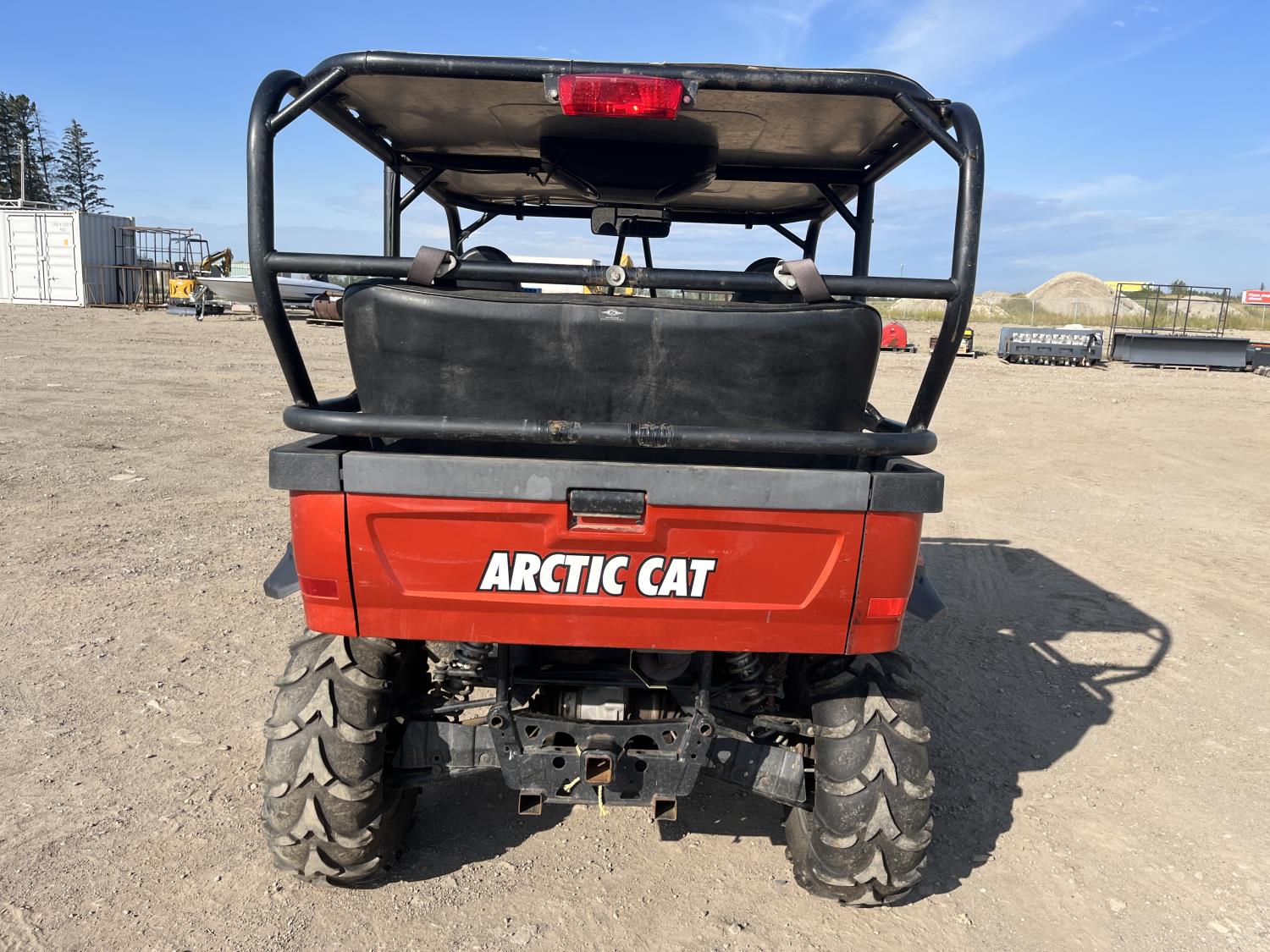 1000 cc fuel injected engine, automatic transmission, Hi/Lo range, reverse, 2 passenger seating with dump bucket, front winch with snow plough attachment, receiver and two 28x12x14 and two 28x10x14 tires.