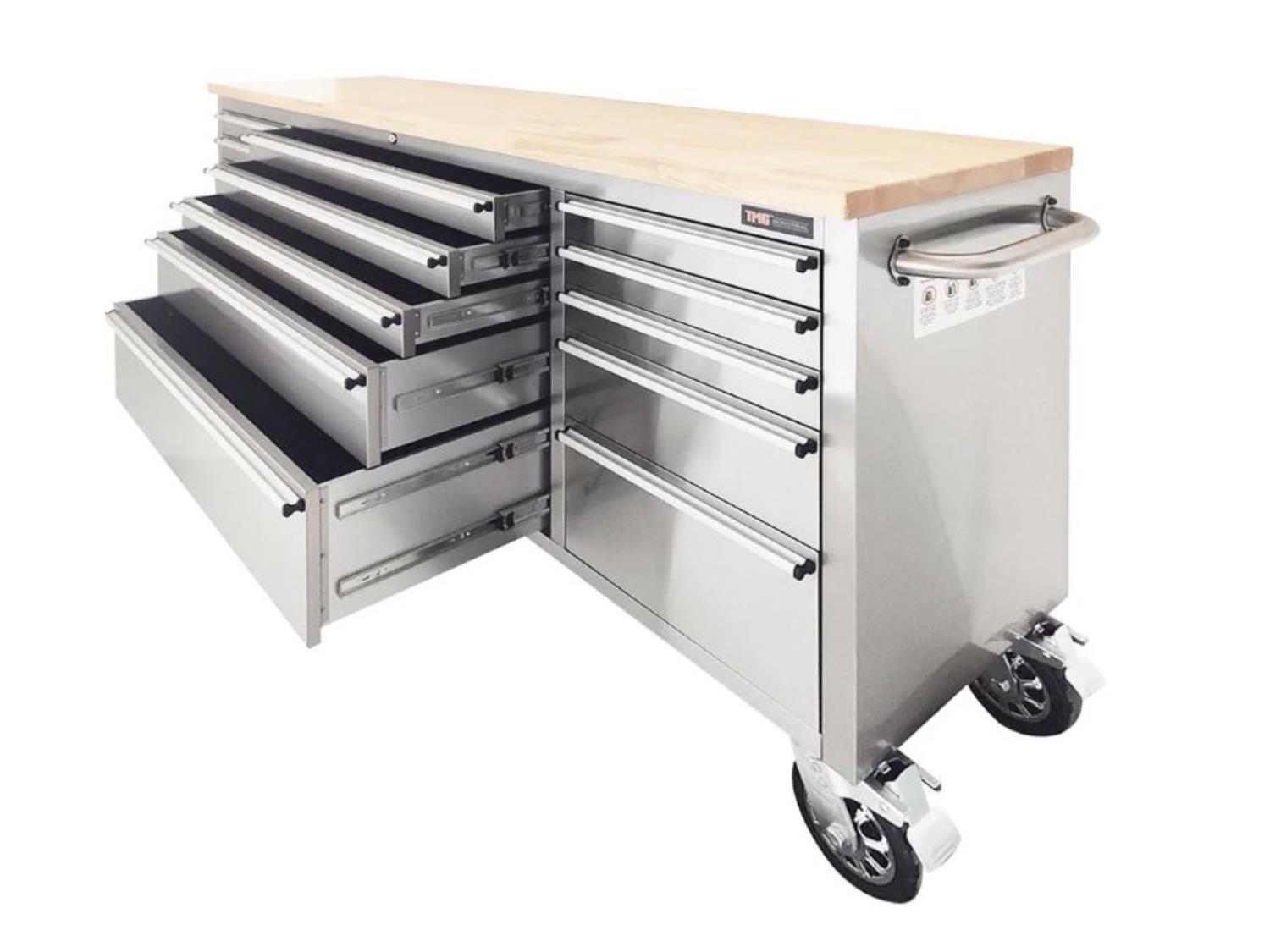 84 TMG Industrial TMG-WB7215S 72” Stainless Steel Rolling Workbench (Unused)