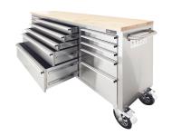 Rubberwood tabletop, 15 lockable drawers, locking wheels