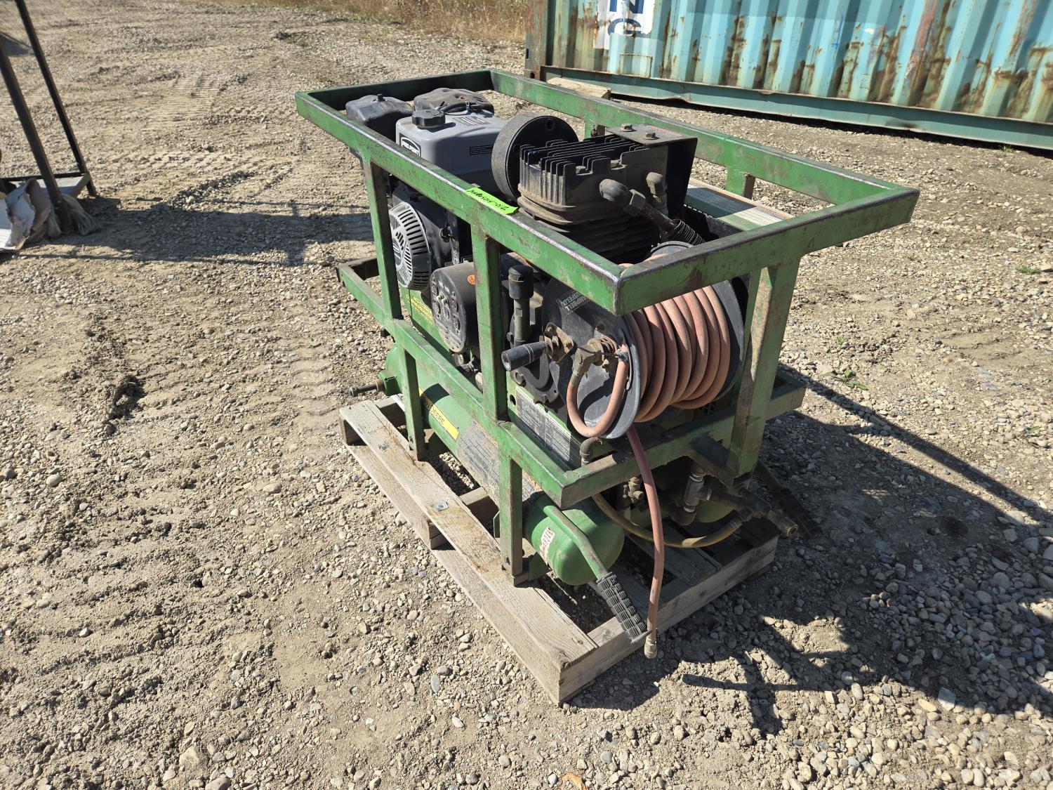 Power Point 433 CC gas engine, air compressor-15.4 CFM at 175 PSI, generator 3500/2200 watt, air hose reel