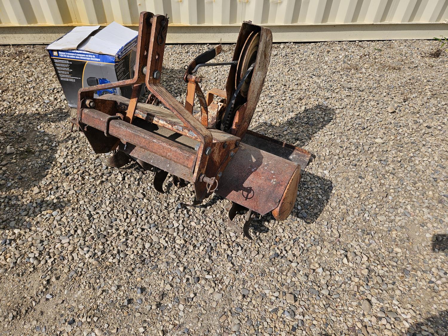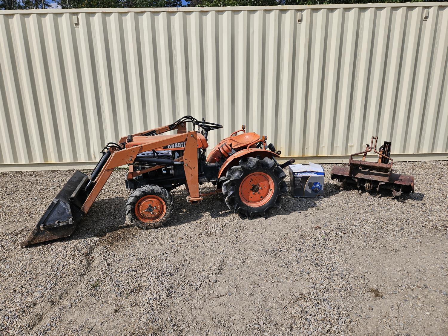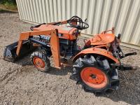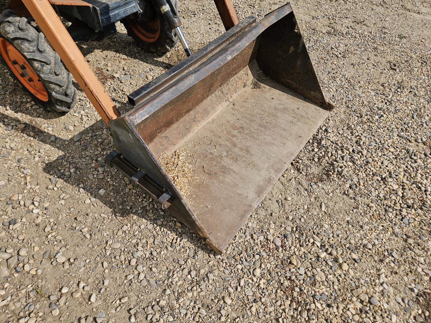 Loader, 40 inch bucket, 2 cylinder 12.8 HP, diesel engine, 6 speed manual transmission, 540 PTO, 3 point hitch, 5.00-12 front tires, 8-16 rear tires, c/w 38 inch rototiller and gas engine