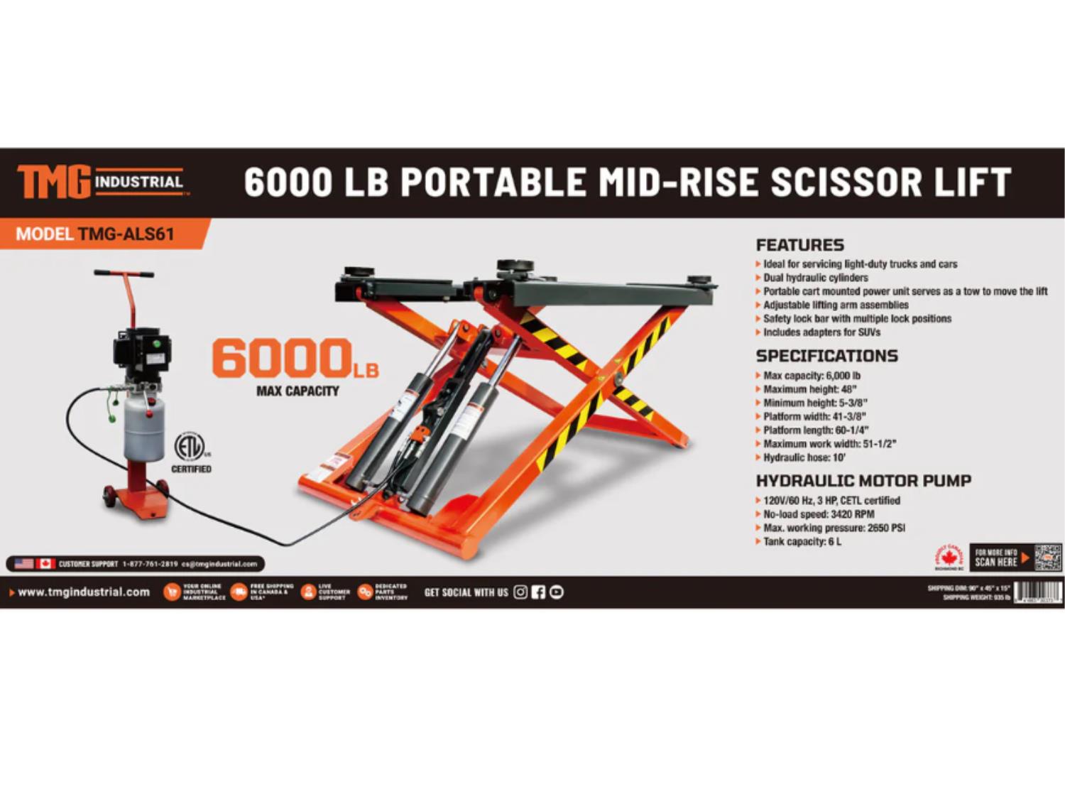 71 TMG Industrial TMG-ALS61 Mid-Rise Portable Automotive Scissor Lift (Unused)