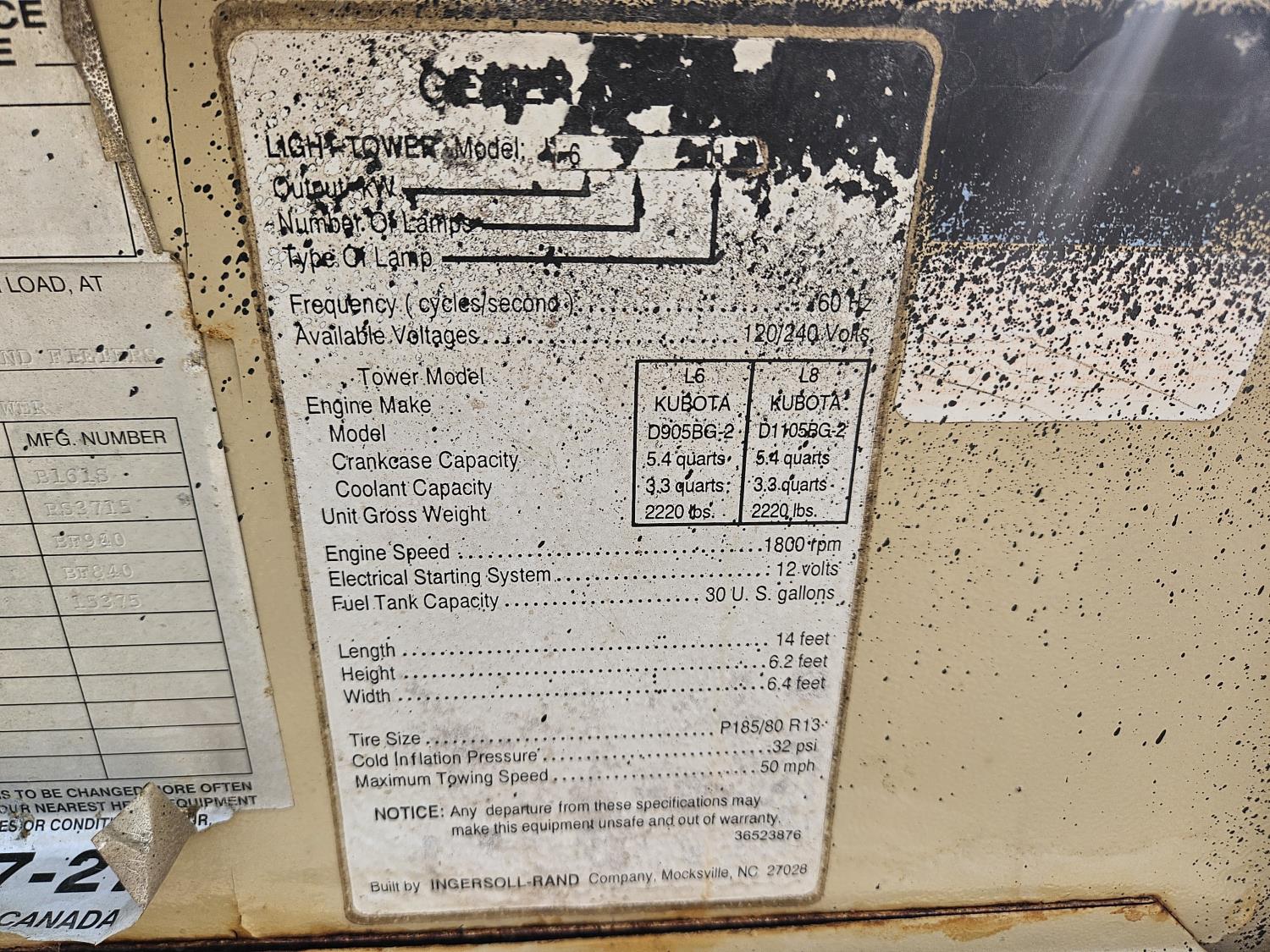 117 1998 Ingersoll Rand Portable Light Tower