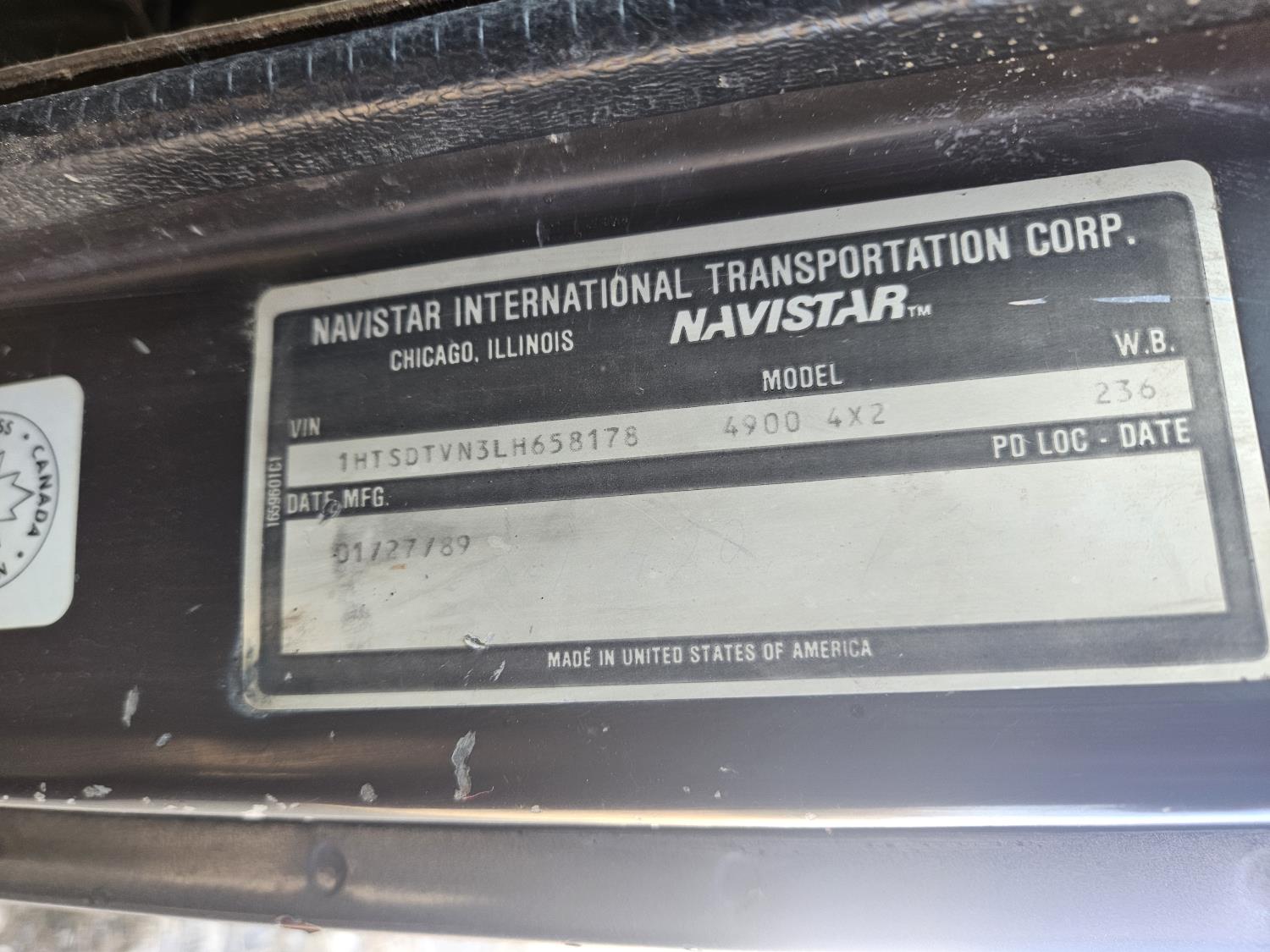 187 1990 International 4900 S/A Day Cab Flat Deck Truck