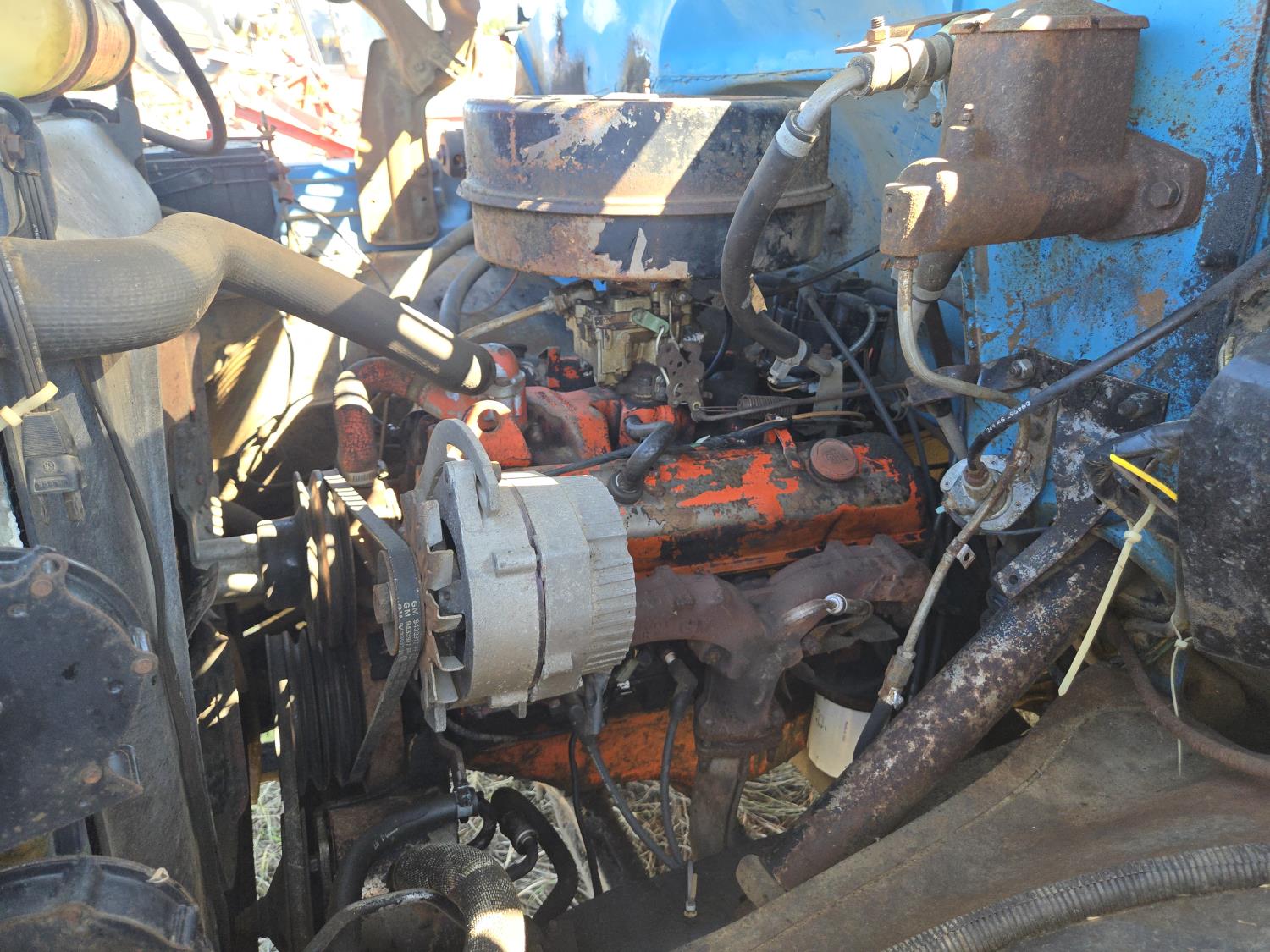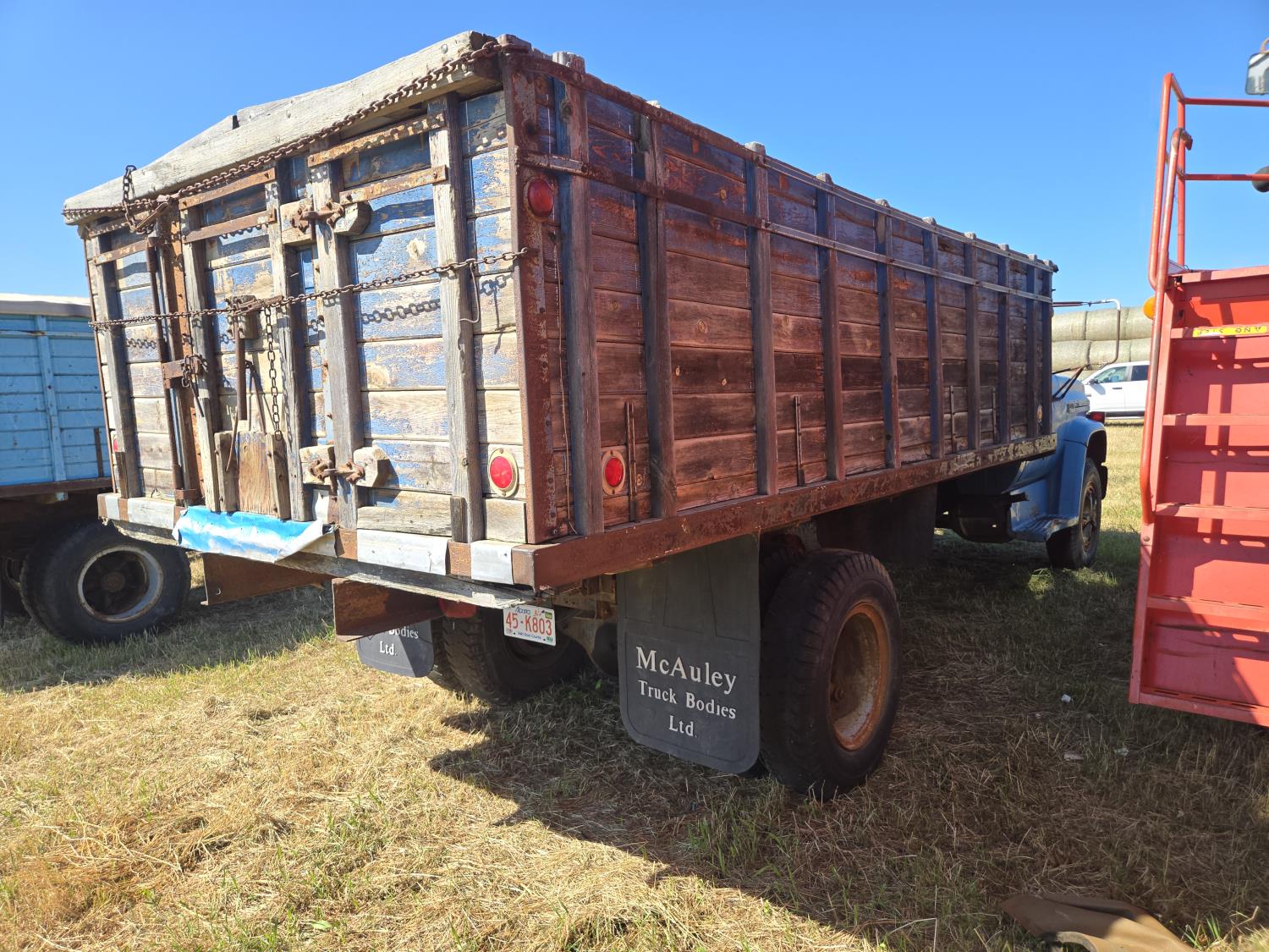 V8 gas engine, manual transmission, hoist, 16' wood box, plumbed for side mount drill fill , 9.00X20 tires