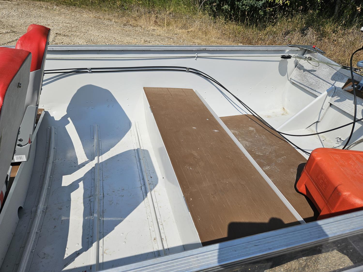 Boat trailer has fresh paint, new lights and wiring and wheel bearings serviced.
