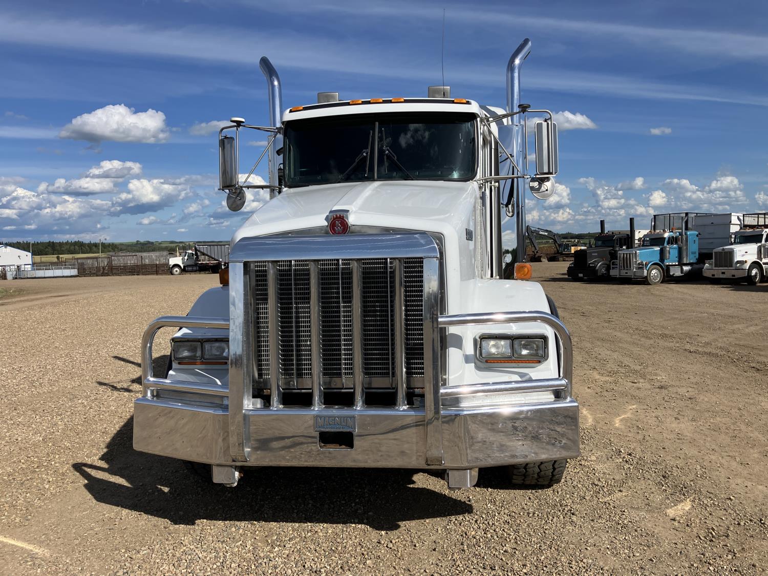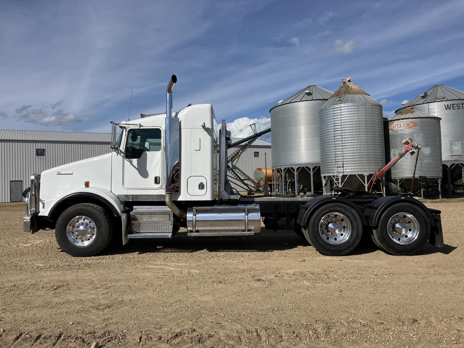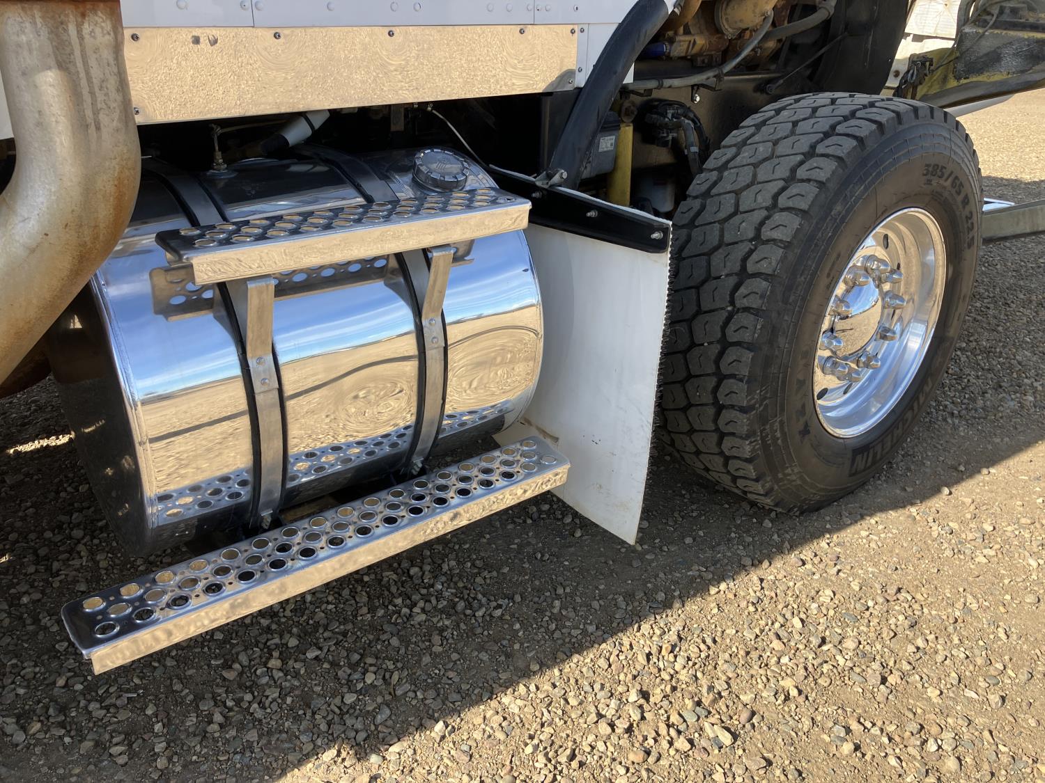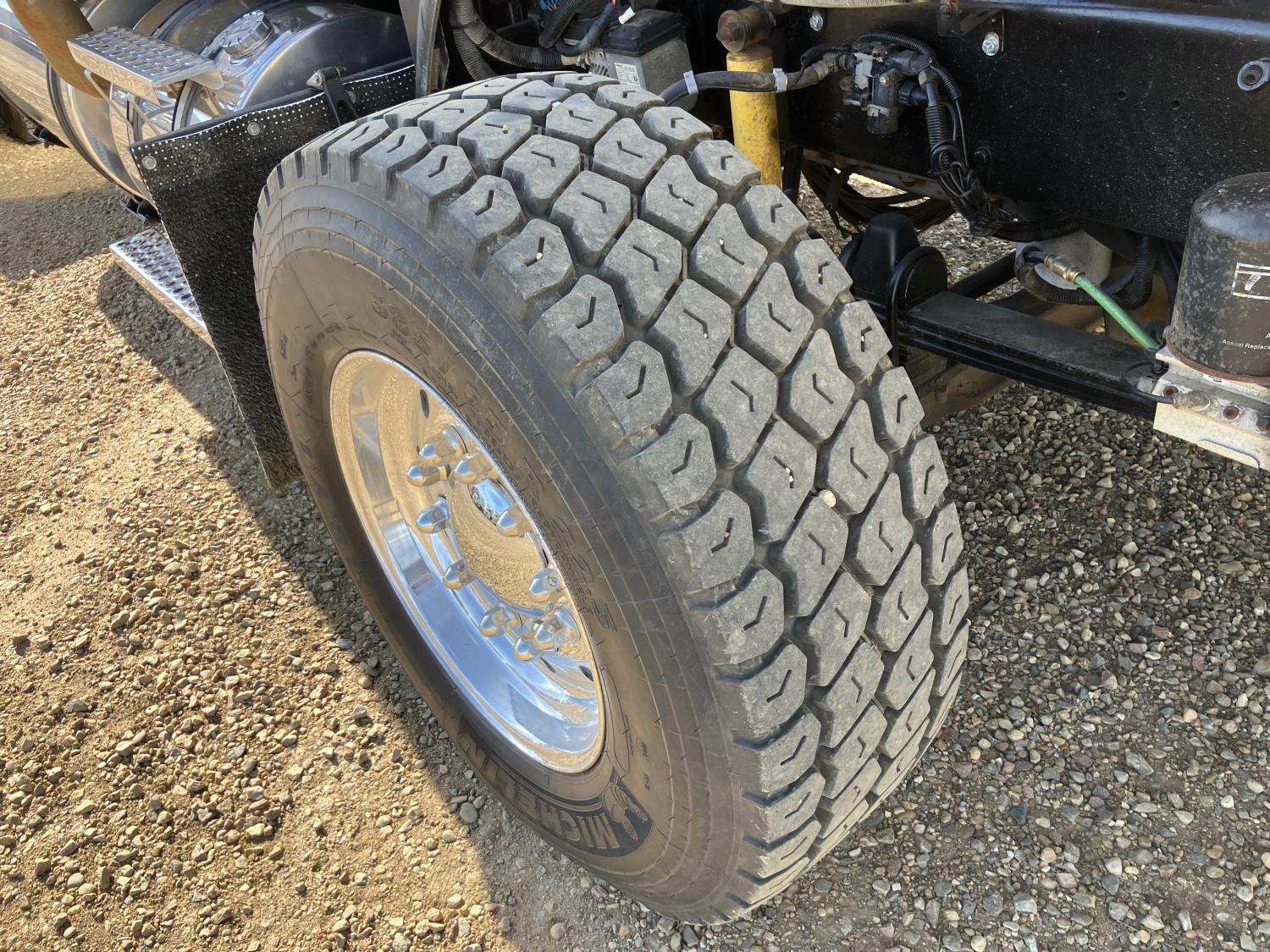 Caterpillar C15 diesel engine, engine block heater, positive air shutoff, 18 speed manual transmission, air ride suspension, 18,000 lb front axle, 46,000 lb rear axles, New a/c pump, condenser, starter, batteries, and shut off switch, full fenders, back up beeper unhooked, Kenworth 8 bag suspension, all aluminum wheels, 385/65R22.5 front tires, 11R24.5 rear tires