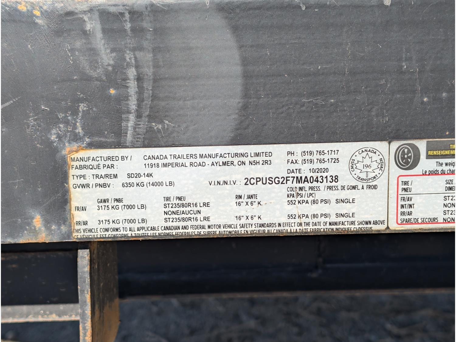 146 2021 Canadian Trailer Manufacturing 20 Ft T/A Flat Deck Trailer