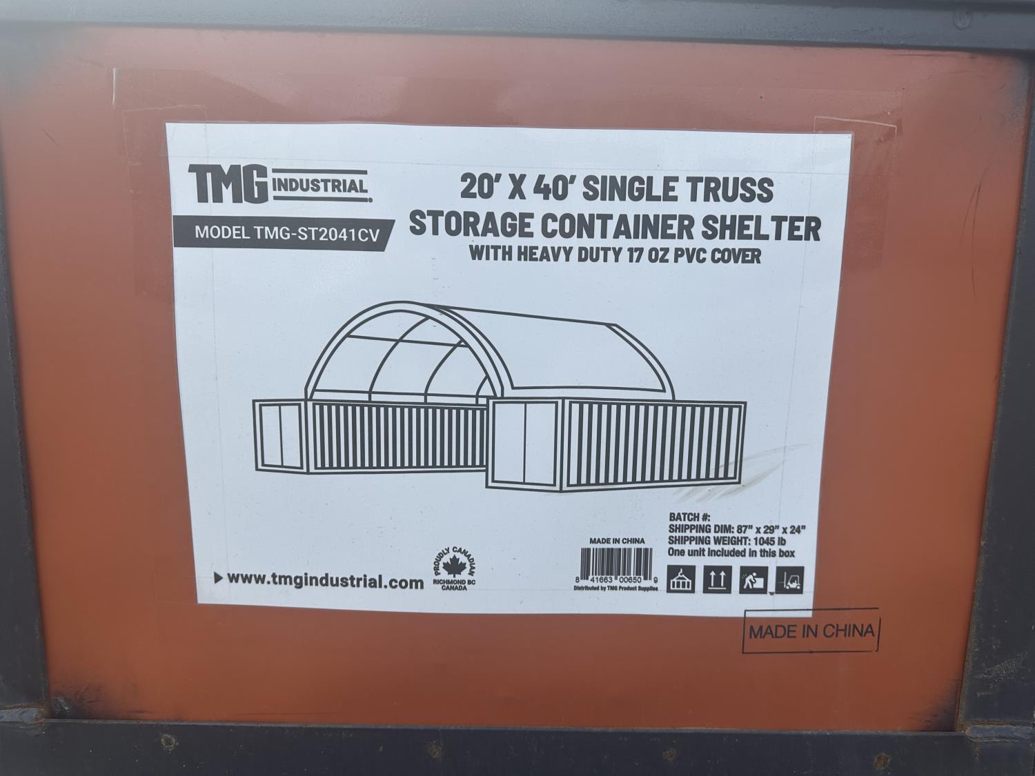 21 TMG Industrial ST2041CV 20 Ft X 40 Ft PVC Single Truss Storage Container Shelter (Unused)