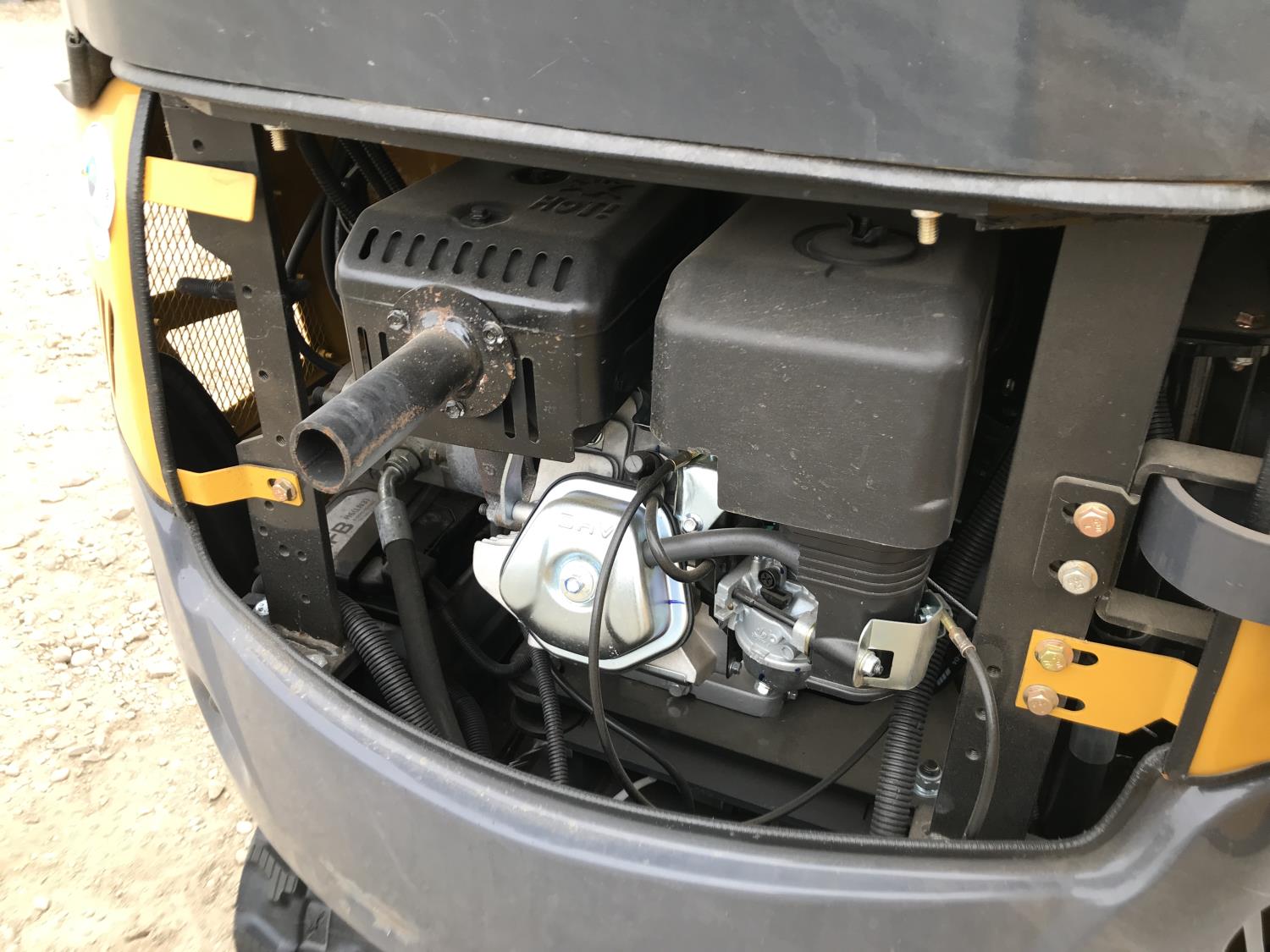 Enclosed cab, A/C, 17 inch dig bucket, manual coupler, manual thumb, 28 inch stick, backfill blade, 7 inch rubber tracks