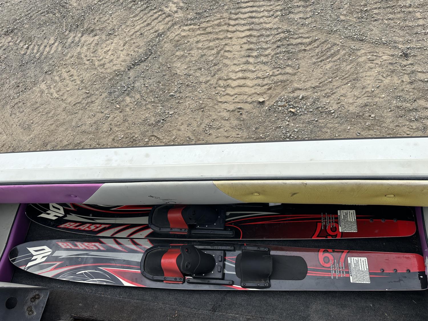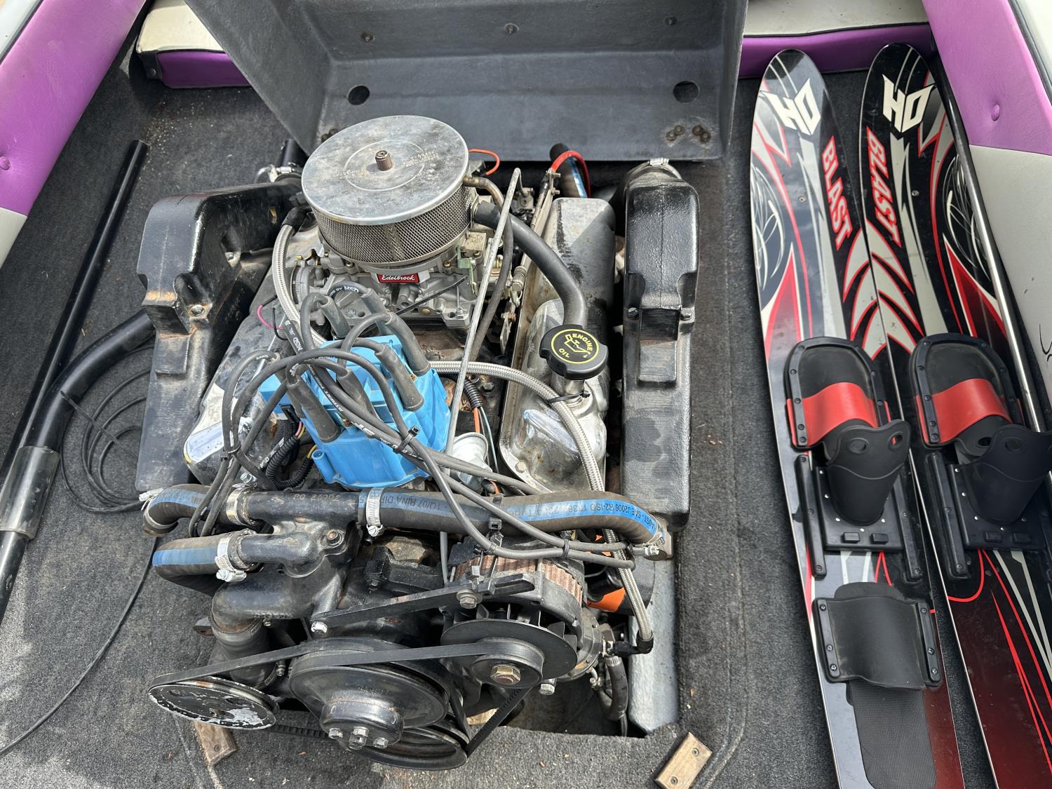 Includes 2 lifejackets, two tubes, 1 set of water skis, 4 tow ropes, 1 uninstalled propeller, barefoot bar