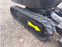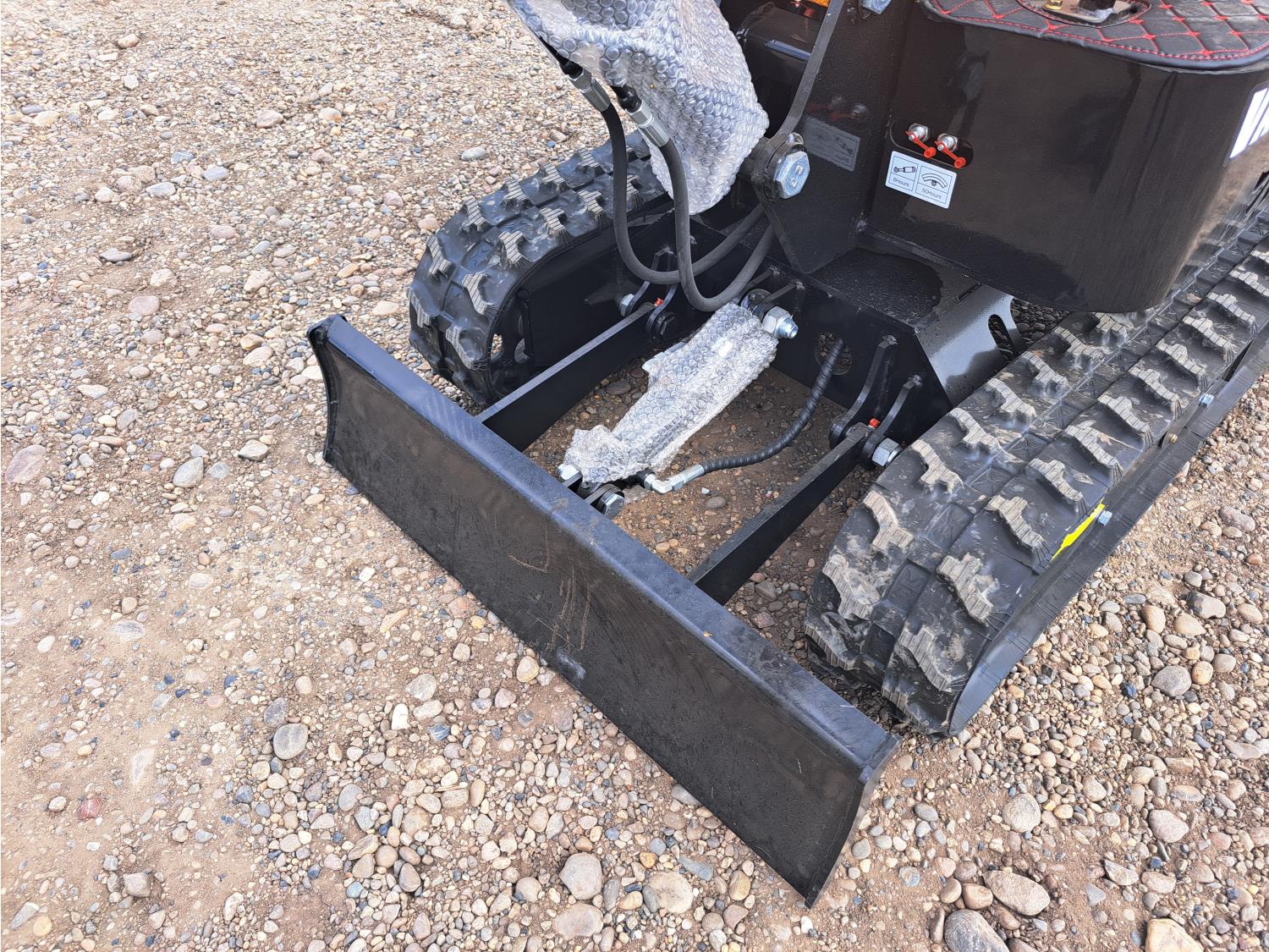 Open station, gas engine, 14 inch dig bucket, manual thumb, backfill blade, 7 inch rubber tracks