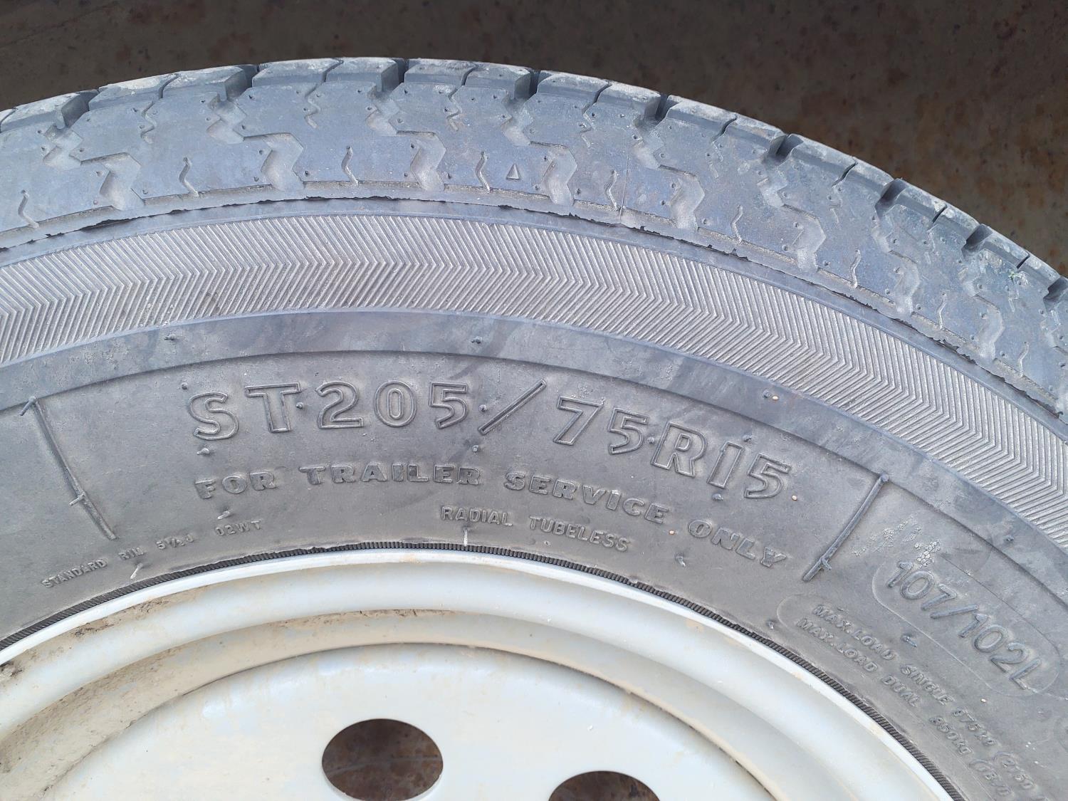 82 inch wide deck, wood deck, spring suspension, ball hitch, stake pockets, ramps, spare tire, 3500 lb axles, 205/75R15 tires