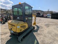 Enclosed cab, 25hp gas engine, 15 inch dig bucket, manual coupler, 1 auxiliary hydraulics, swing boom, backfill blade, rubber tracks