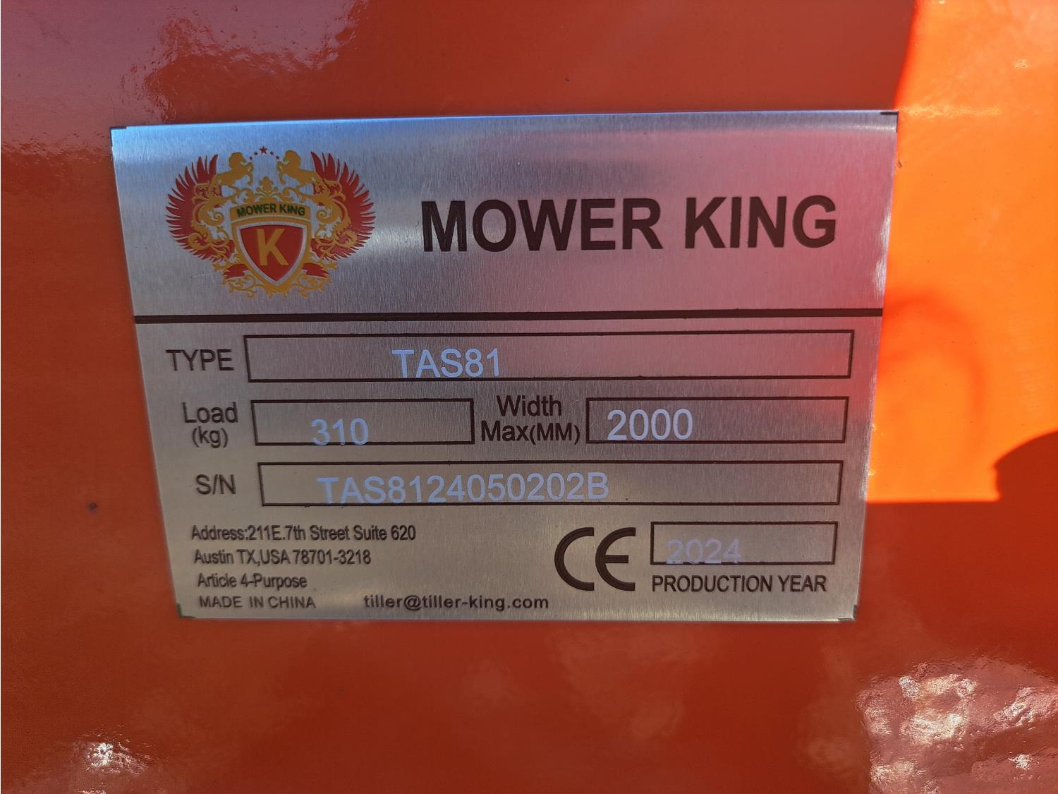 420 2024 Mower King TAS81 3 PT Hitch 83 Inch Rotary Tiller - Tractor Attachment (Unused)
