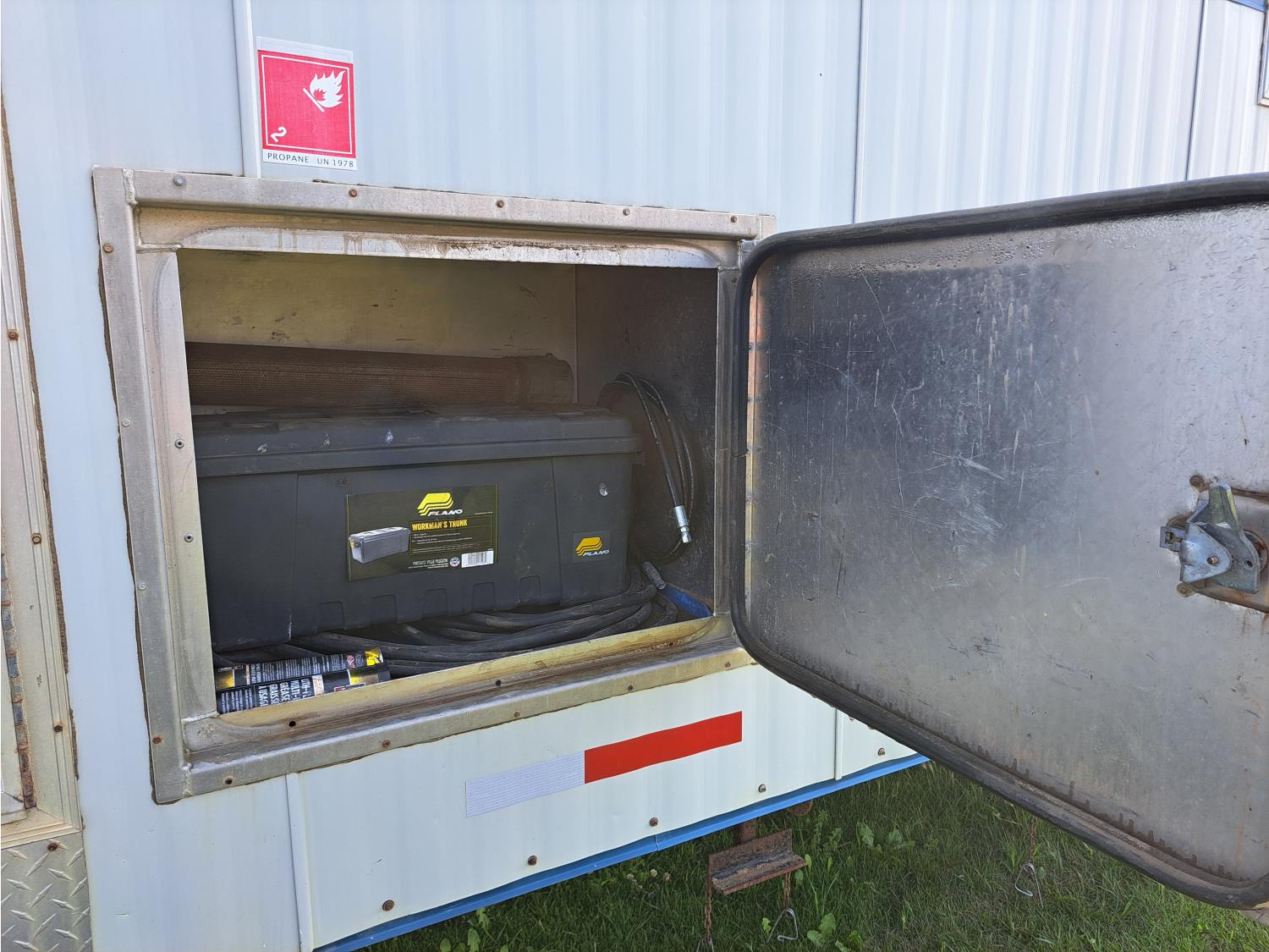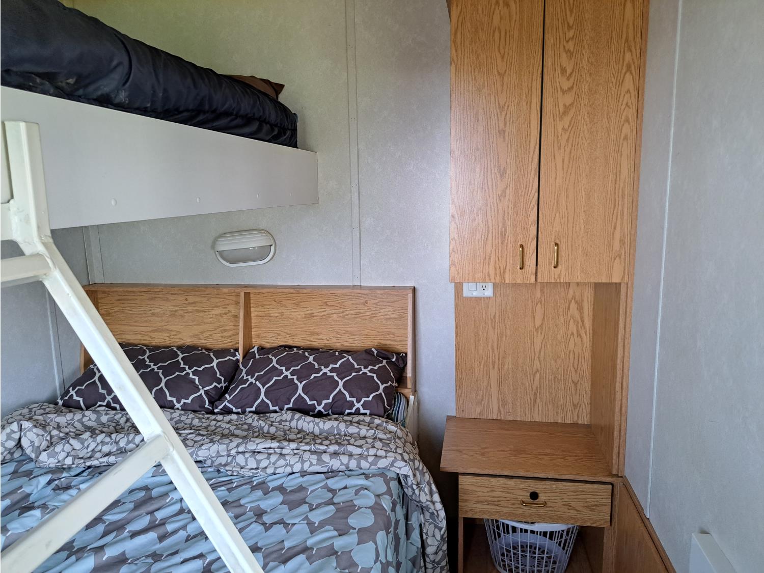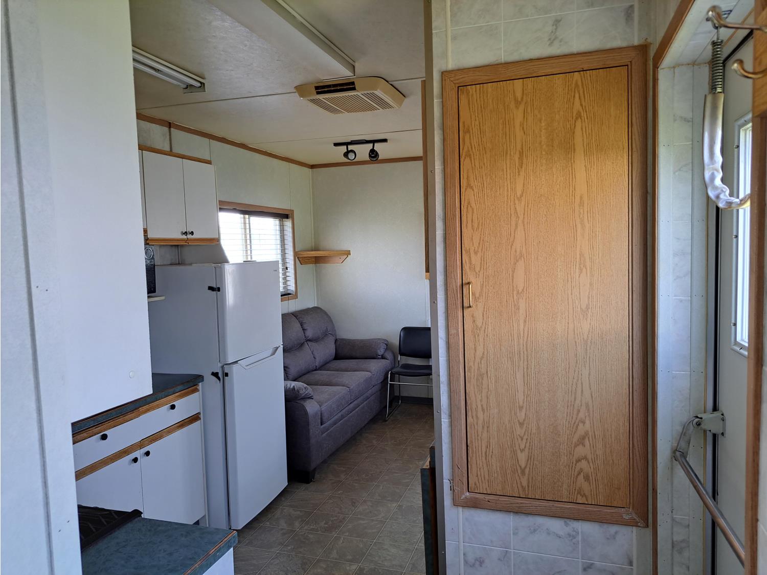 sleeps 3, fridge, oven, microwave, full bathroom, furnace, hot water system, air conditioning, 110/220 power, propane tank, pintle hitch, current C-vip, air over hydraulic brakes, 235/85R16 tires