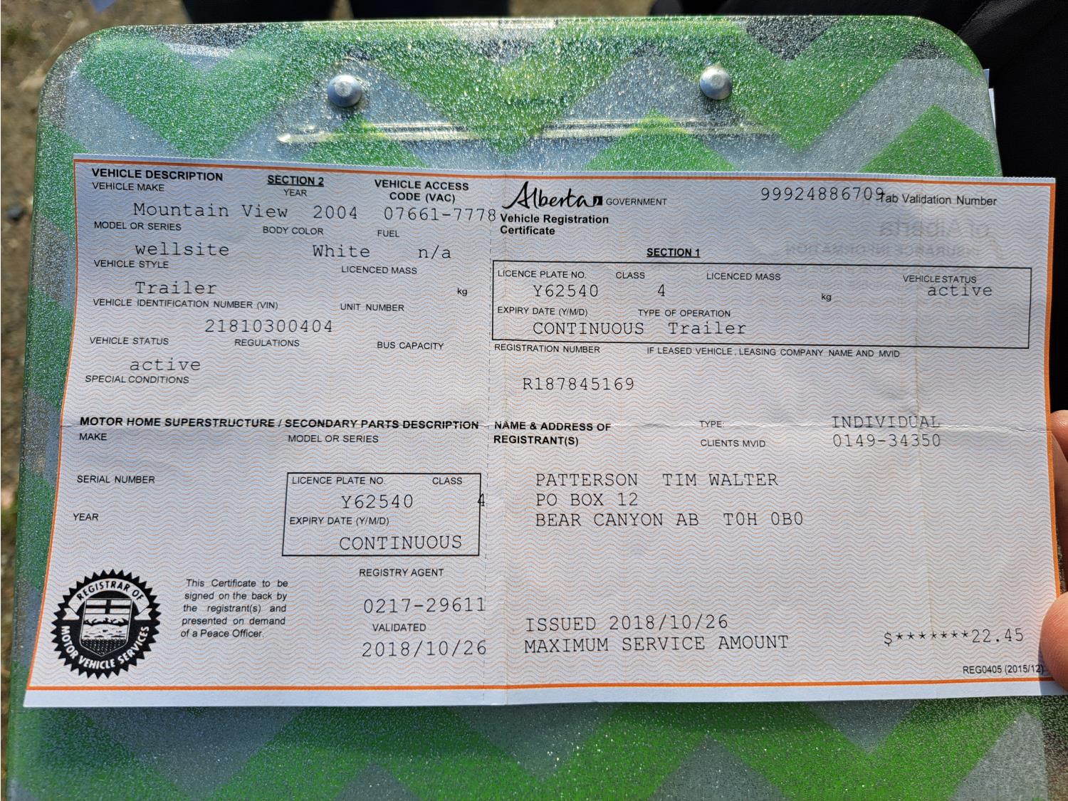 - Copy of registration on hand.
