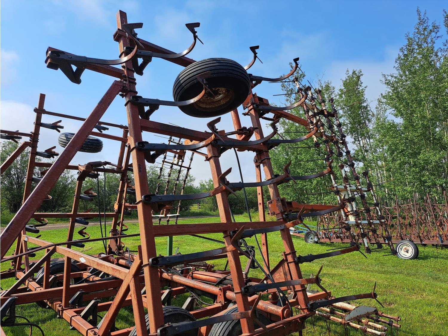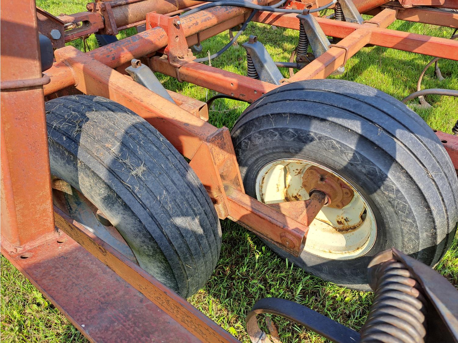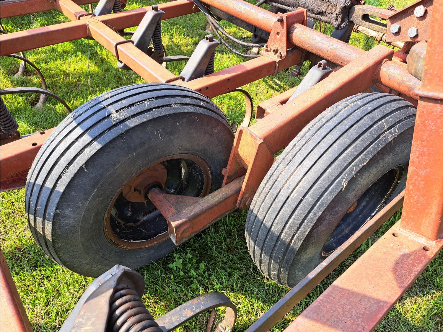 6 inch spacing, 9 inch sweeps, spring tooth harrows, rear hitch, 9.5L-15 tires