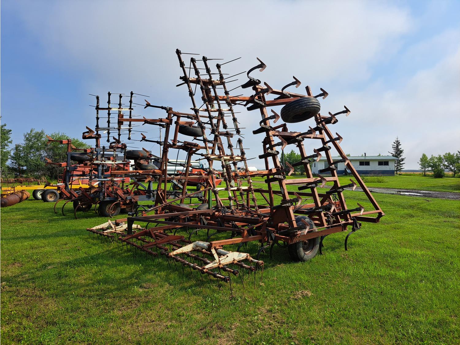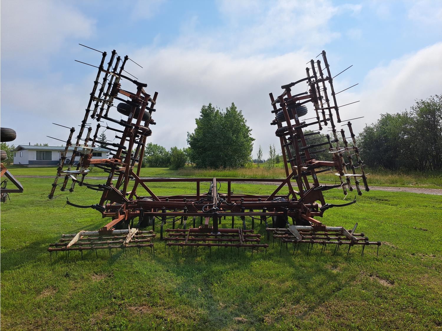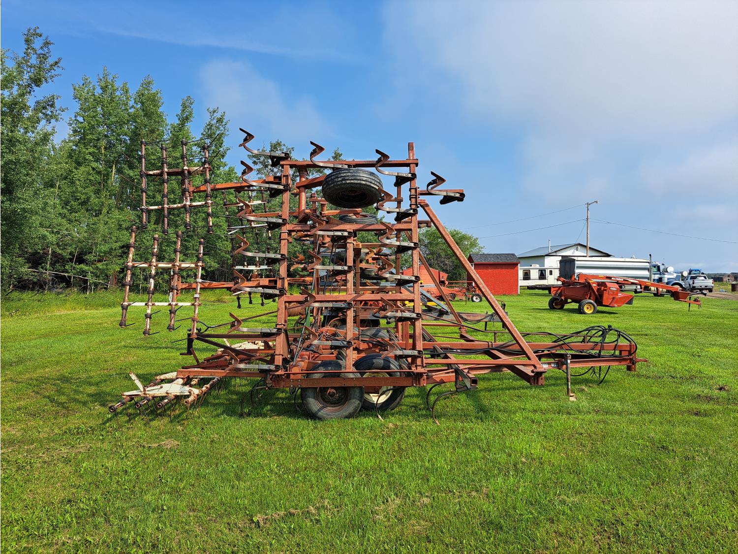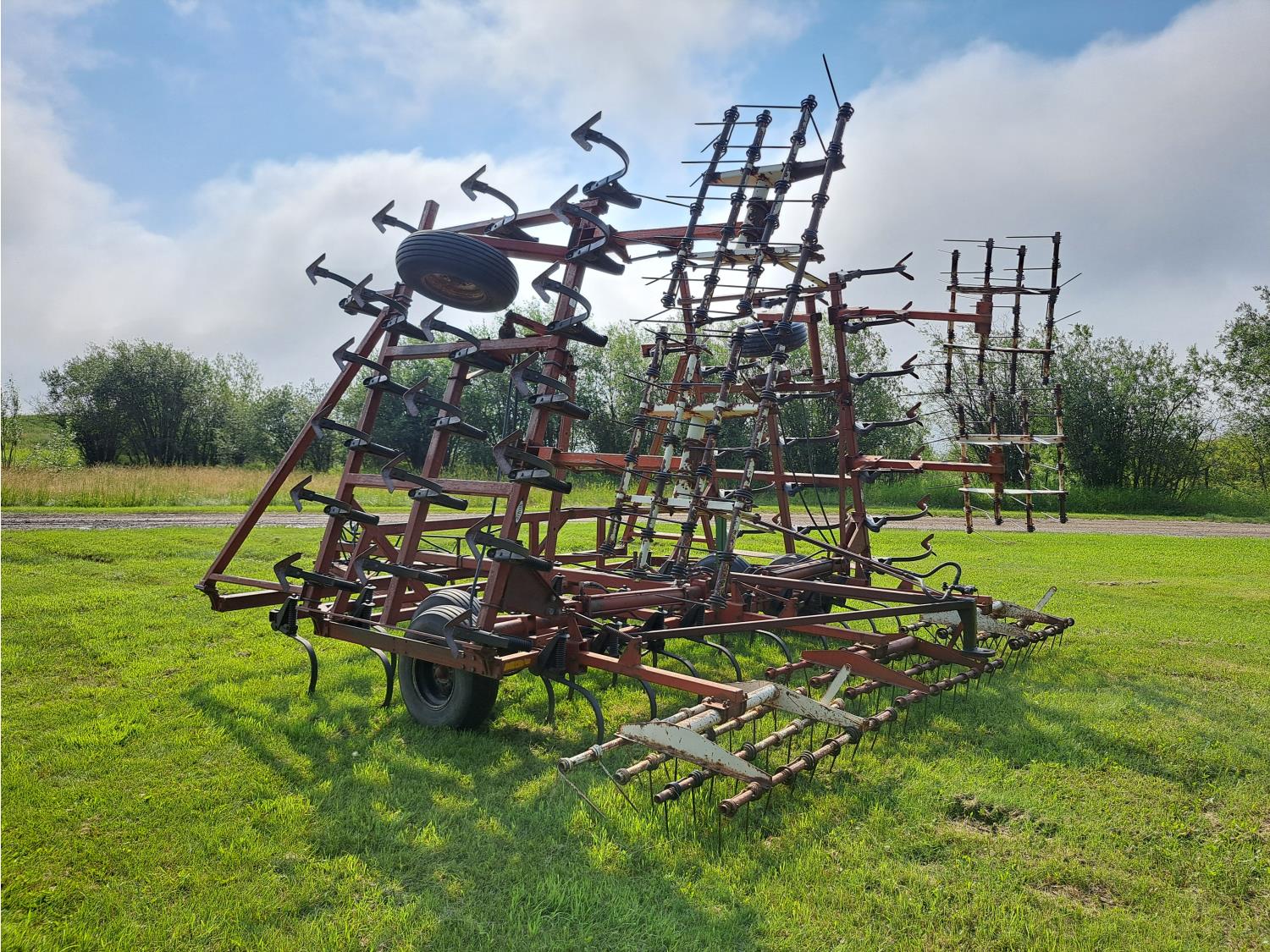 6 inch spacing, 9 inch sweeps, spring tooth harrows, rear hitch, 9.5L-15 tires