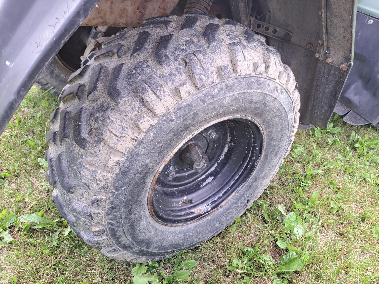 300 cc engine, manual transmission, hitch, front and rear racks, 24X8-11 front tires, 24X10-11 rear tires