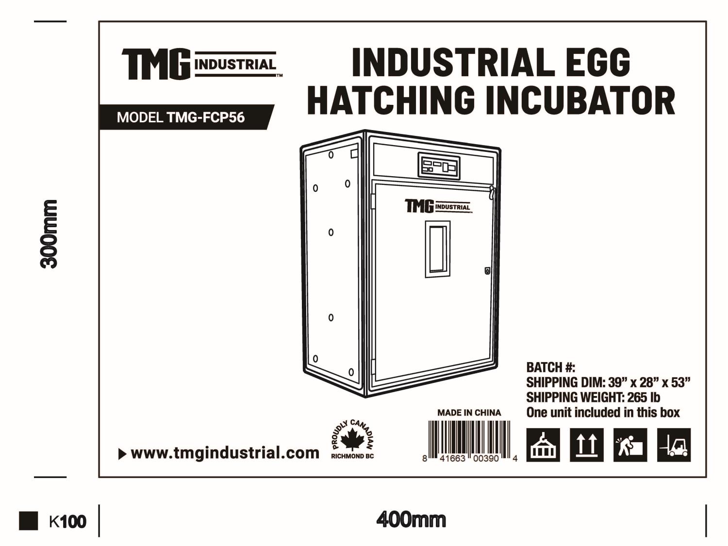 735 TMG Industrial TMG-FCP56 Commercial Grade Large Capacity Egg Hatching Incubator (Unused)