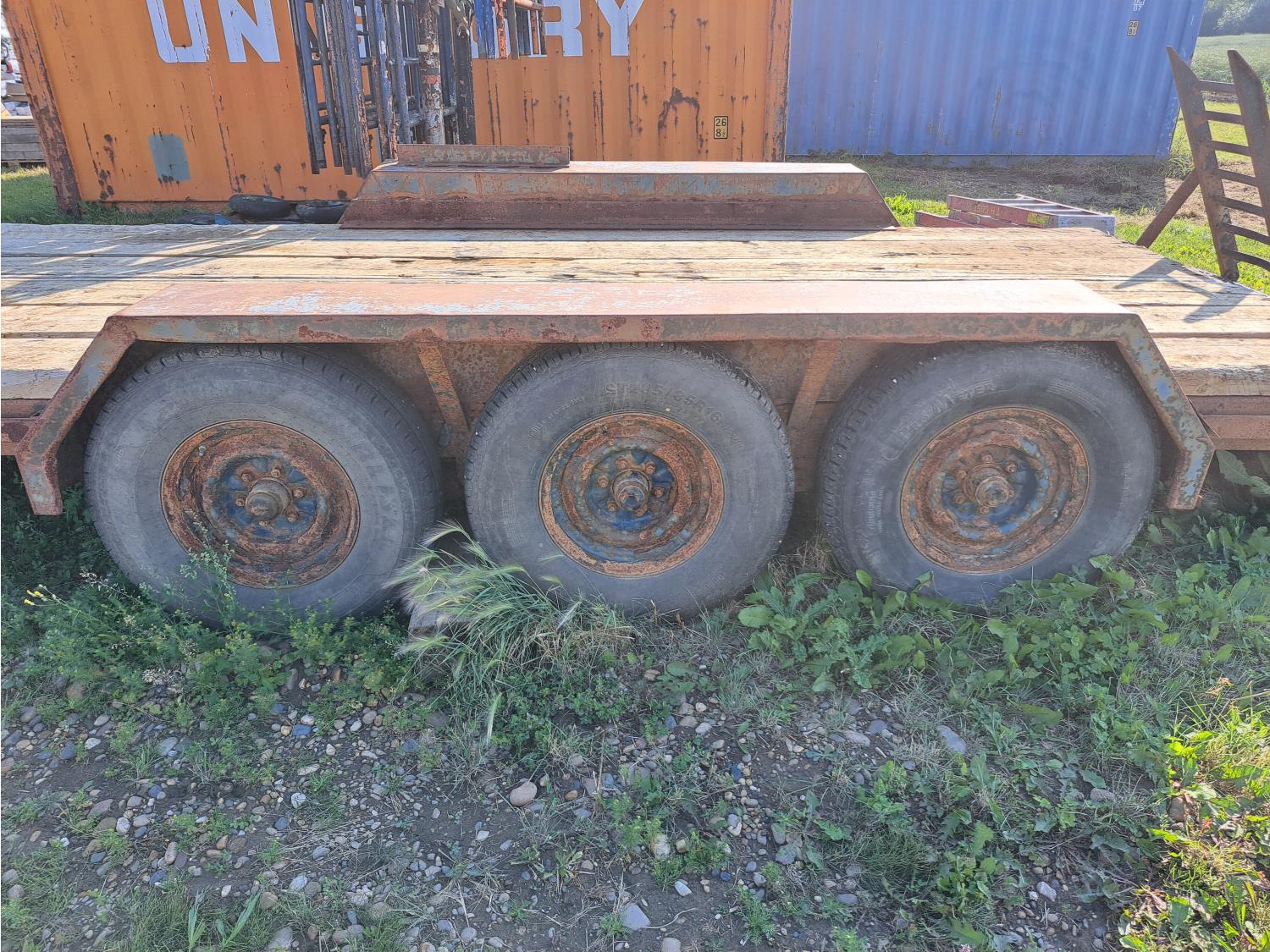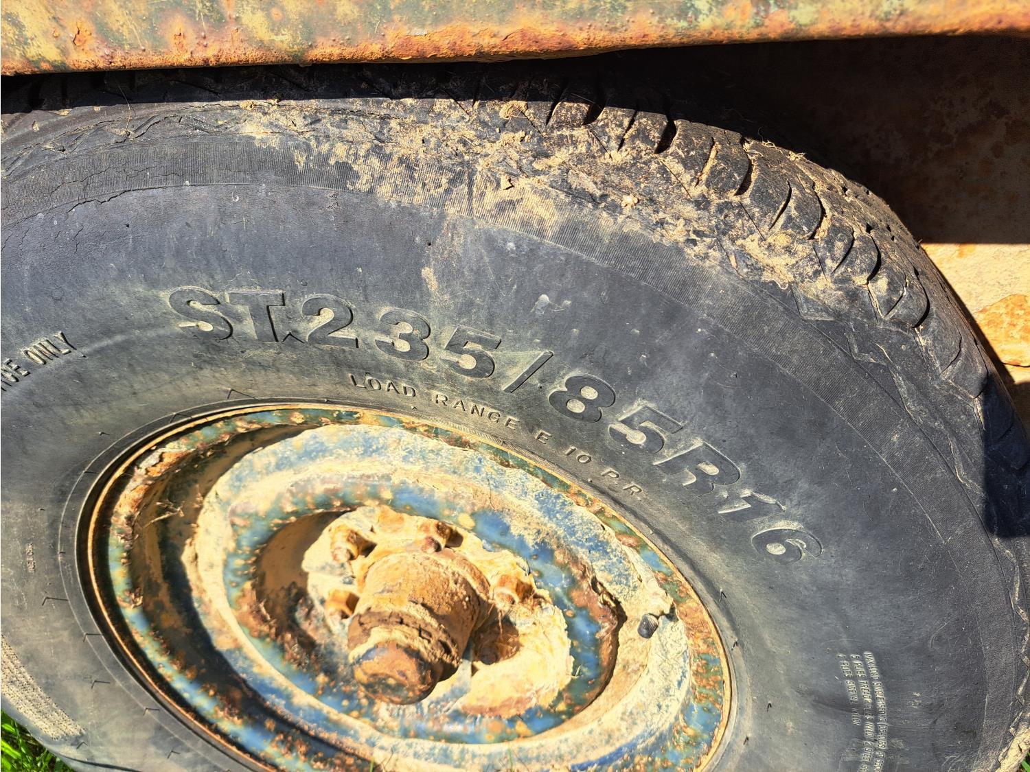 72 inch wide deck, wood deck, stand up ramps, spring suspension, ball hitch, rub rails, 235/85R16 tires