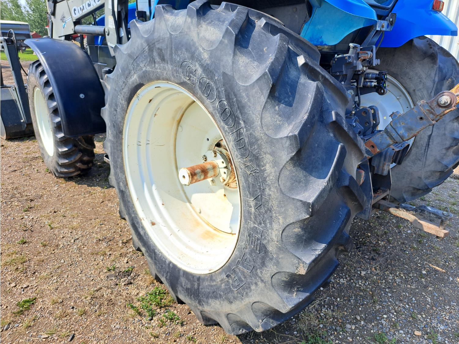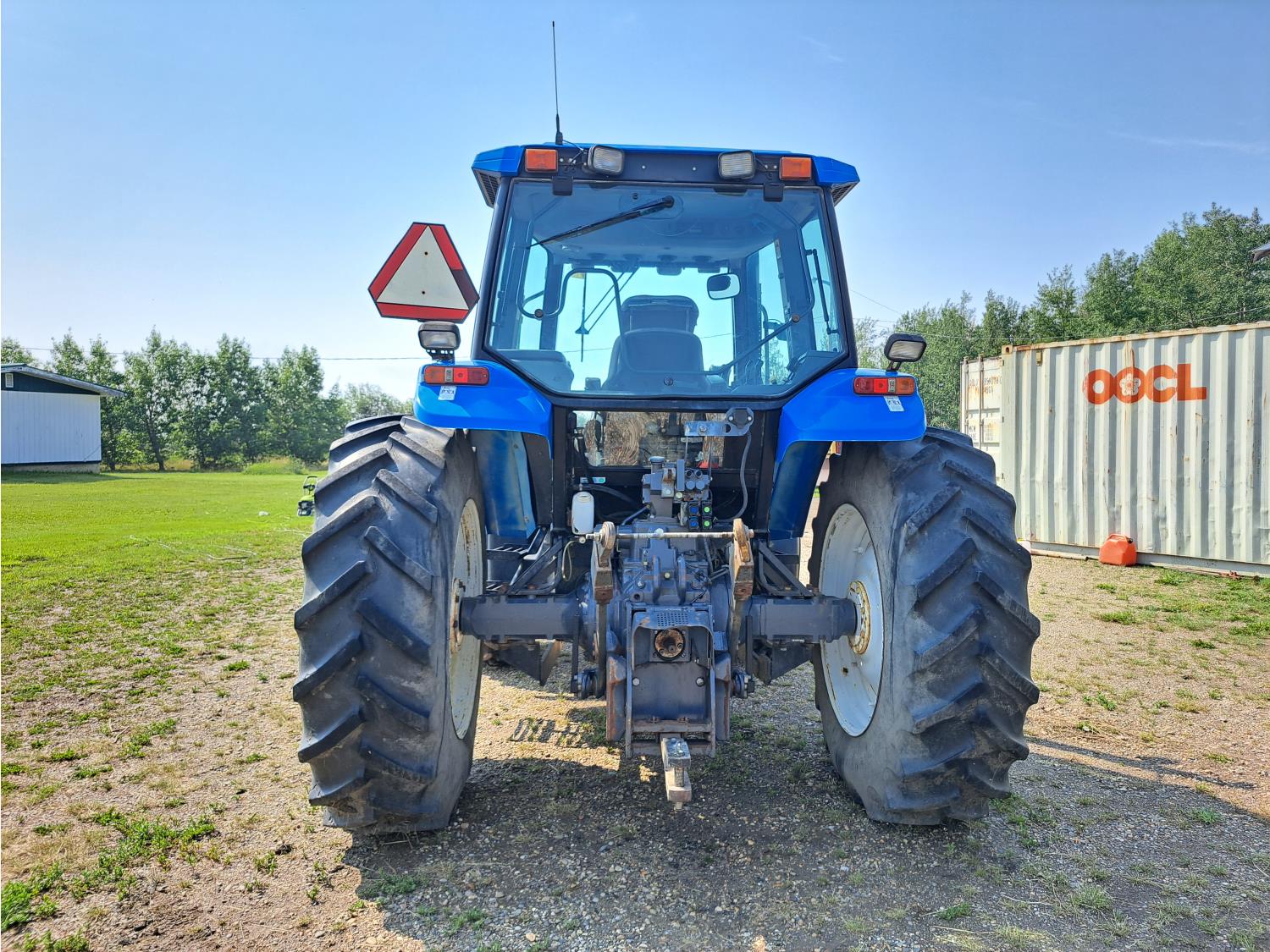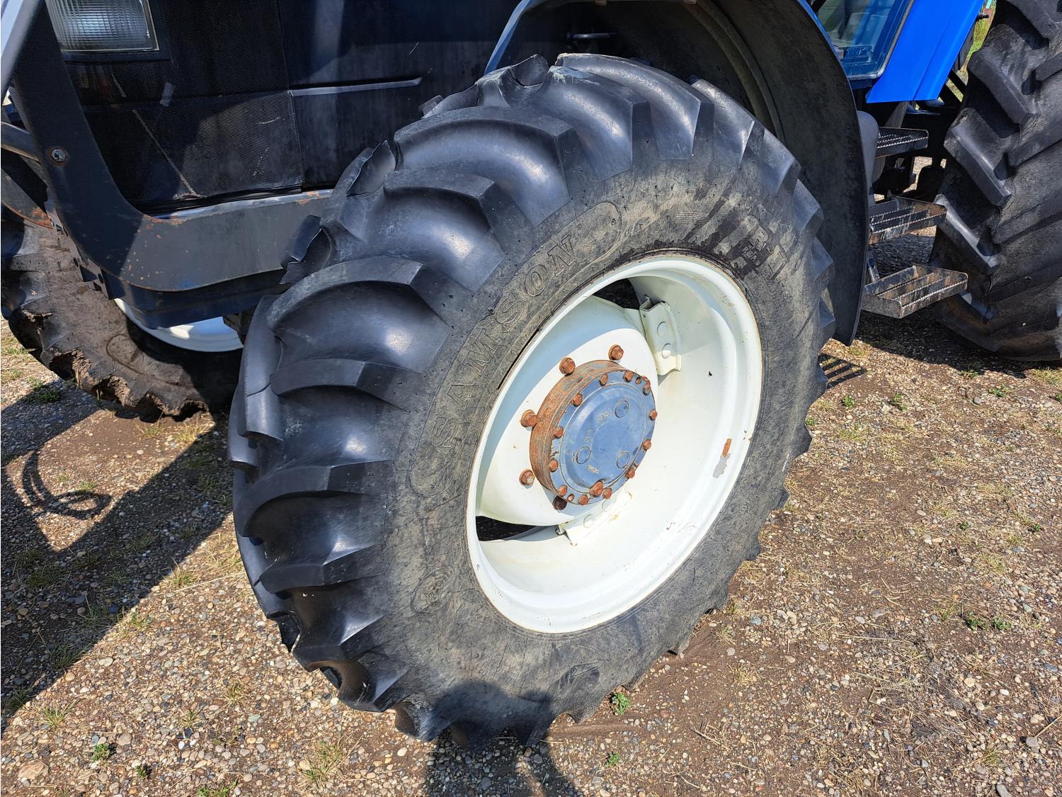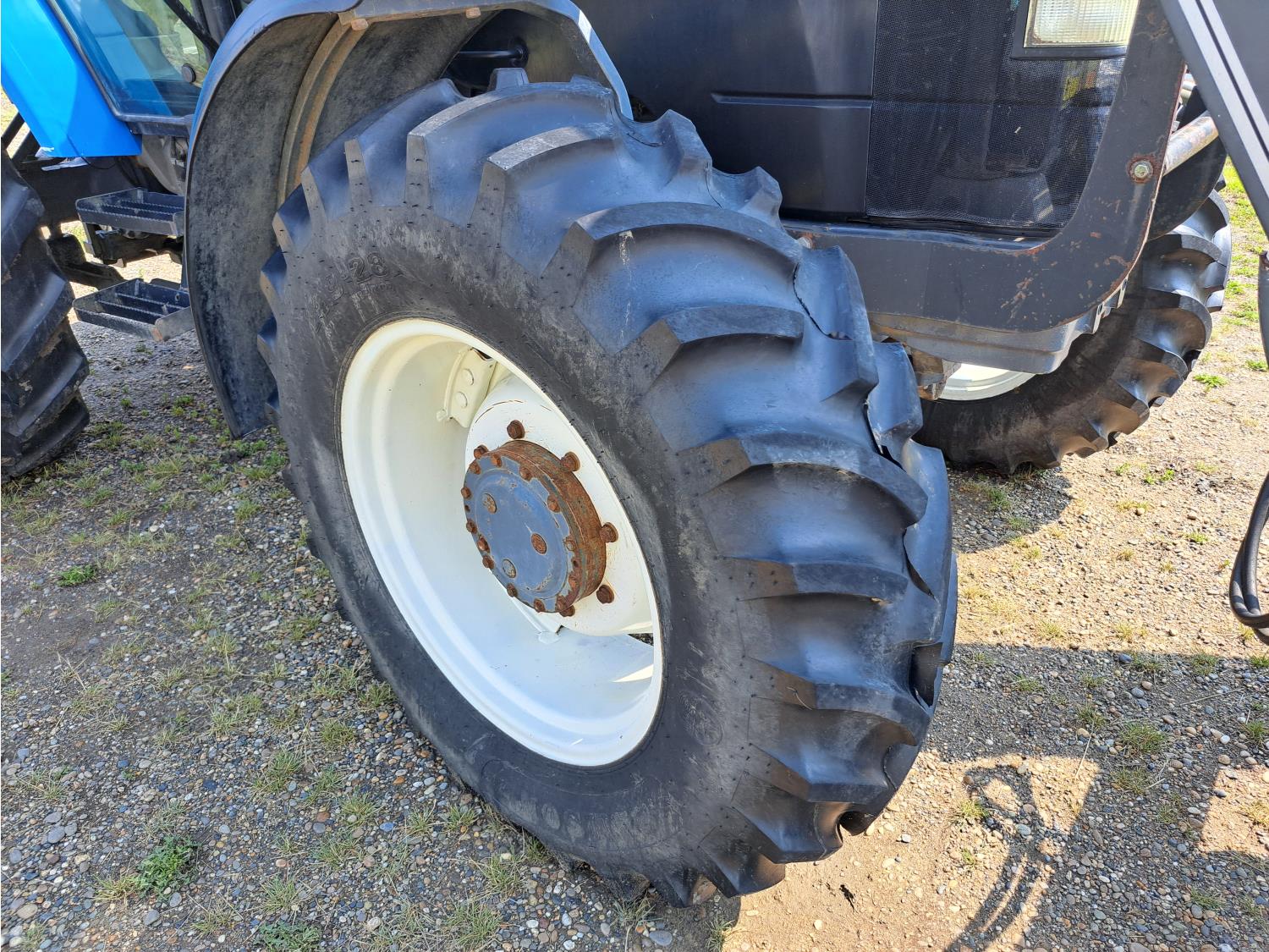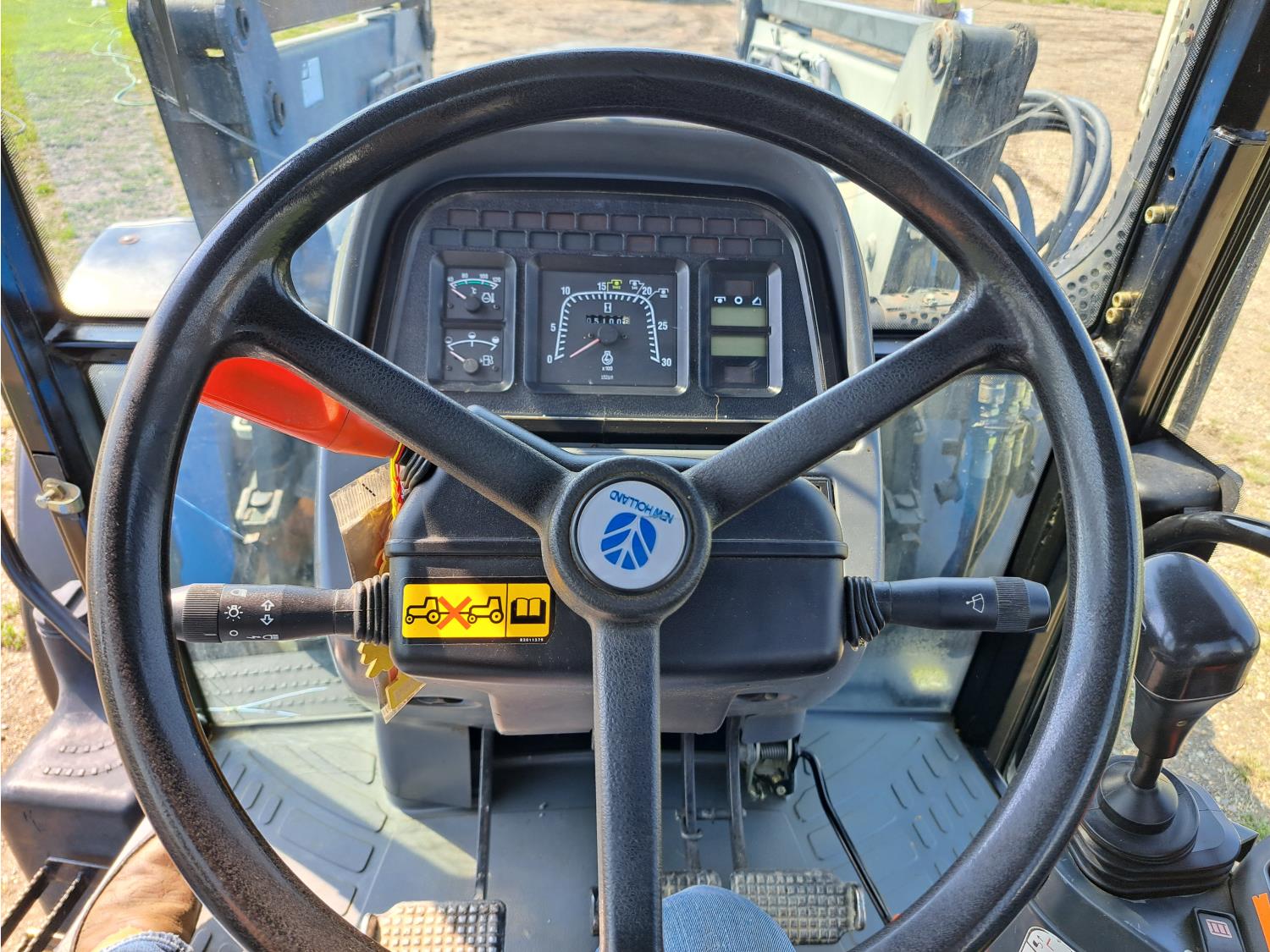 Quicke Q980 loader, 94 inch bucket, grapple, New Holland 7.5 L 6 cylinder 125 HP, diesel engine, 100 PTO HP, 18 speed power shift transmission, cab, A/C, radio, air ride seat, 540/1000 PTO, 2 rear hydraulic outlets, 14.9-28 front tires, 18.4R38 rear tires