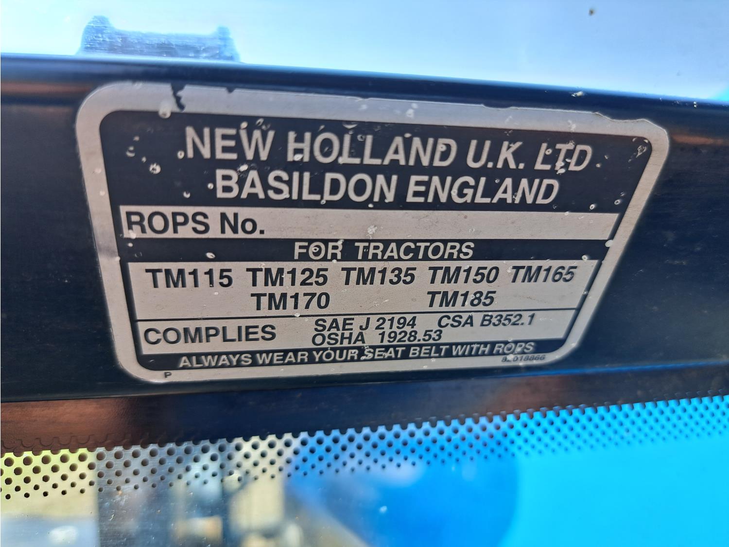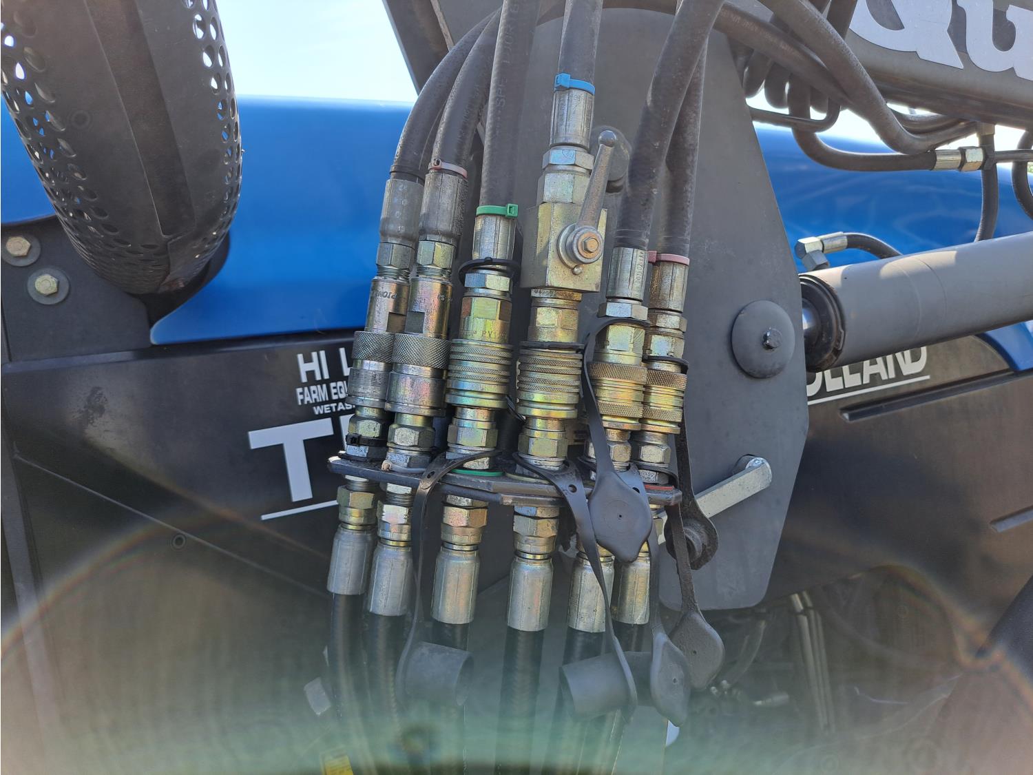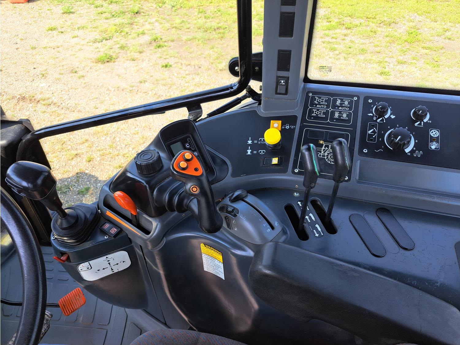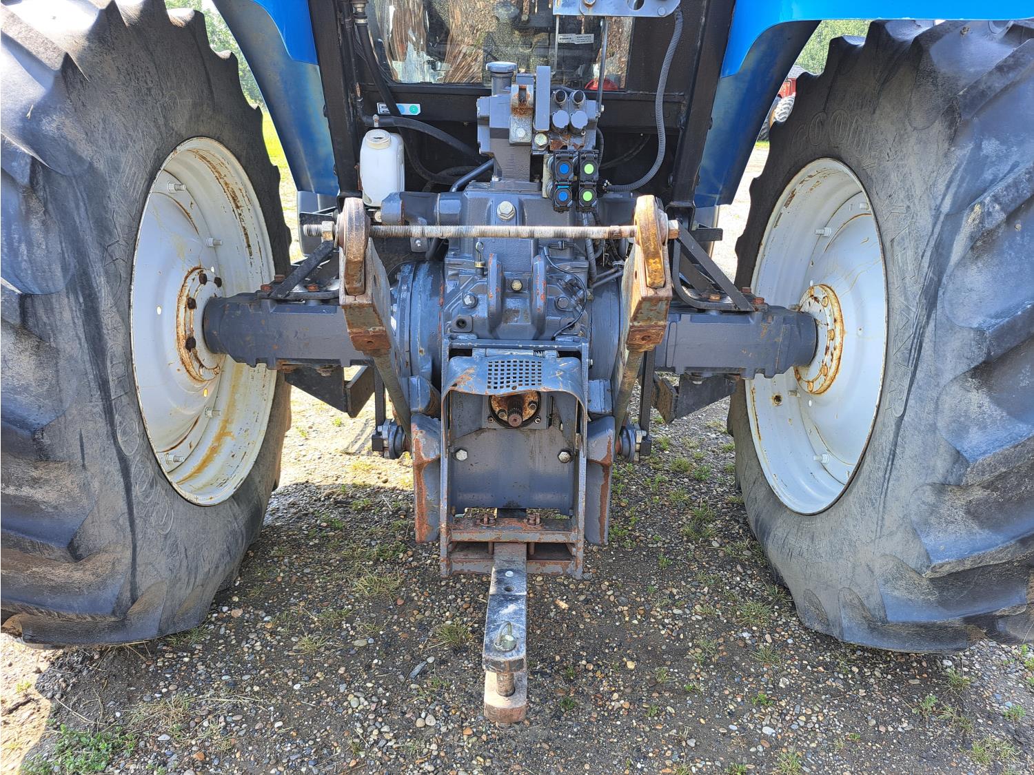 Quicke Q980 loader, 94 inch bucket, grapple, New Holland 7.5 L 6 cylinder 125 HP, diesel engine, 100 PTO HP, 18 speed power shift transmission, cab, A/C, radio, air ride seat, 540/1000 PTO, 2 rear hydraulic outlets, 14.9-28 front tires, 18.4R38 rear tires