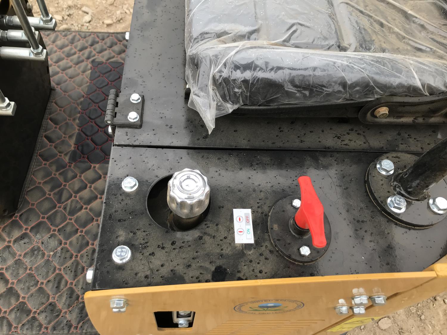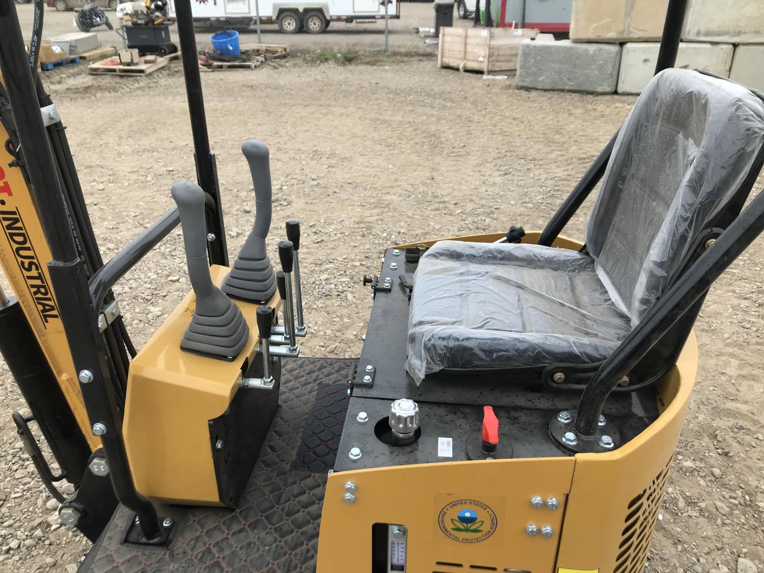 Open station, gas engine, 16 inch dig bucket, manual coupler, manual thumb, 31 inch stick, backfill blade, 7 inch rubber tracks,