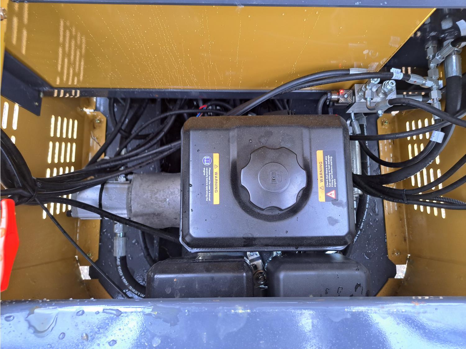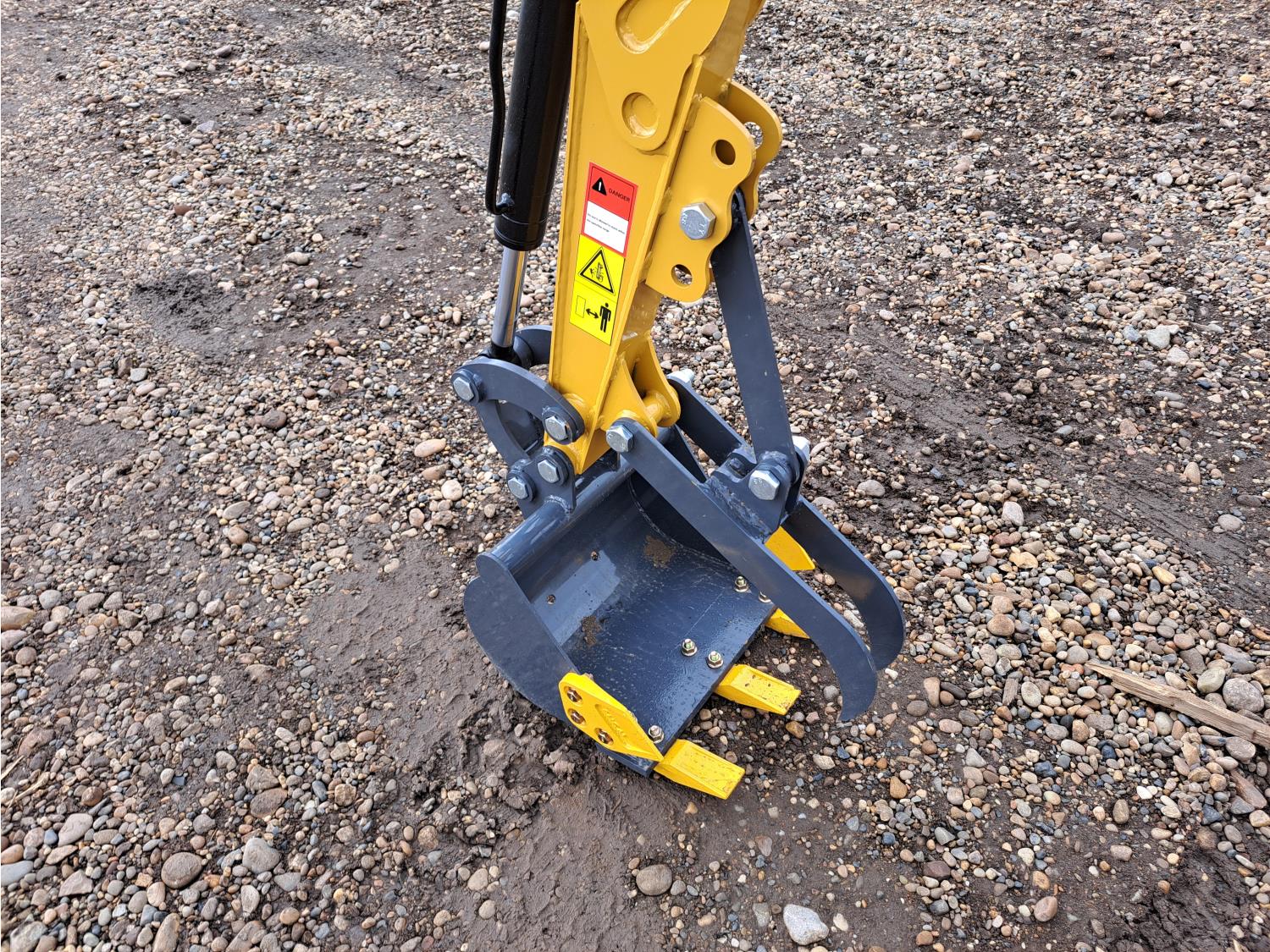 Open station, gas engine, 16 inch dig bucket, manual coupler, manual thumb, 31 inch stick, backfill blade, 7 inch rubber tracks